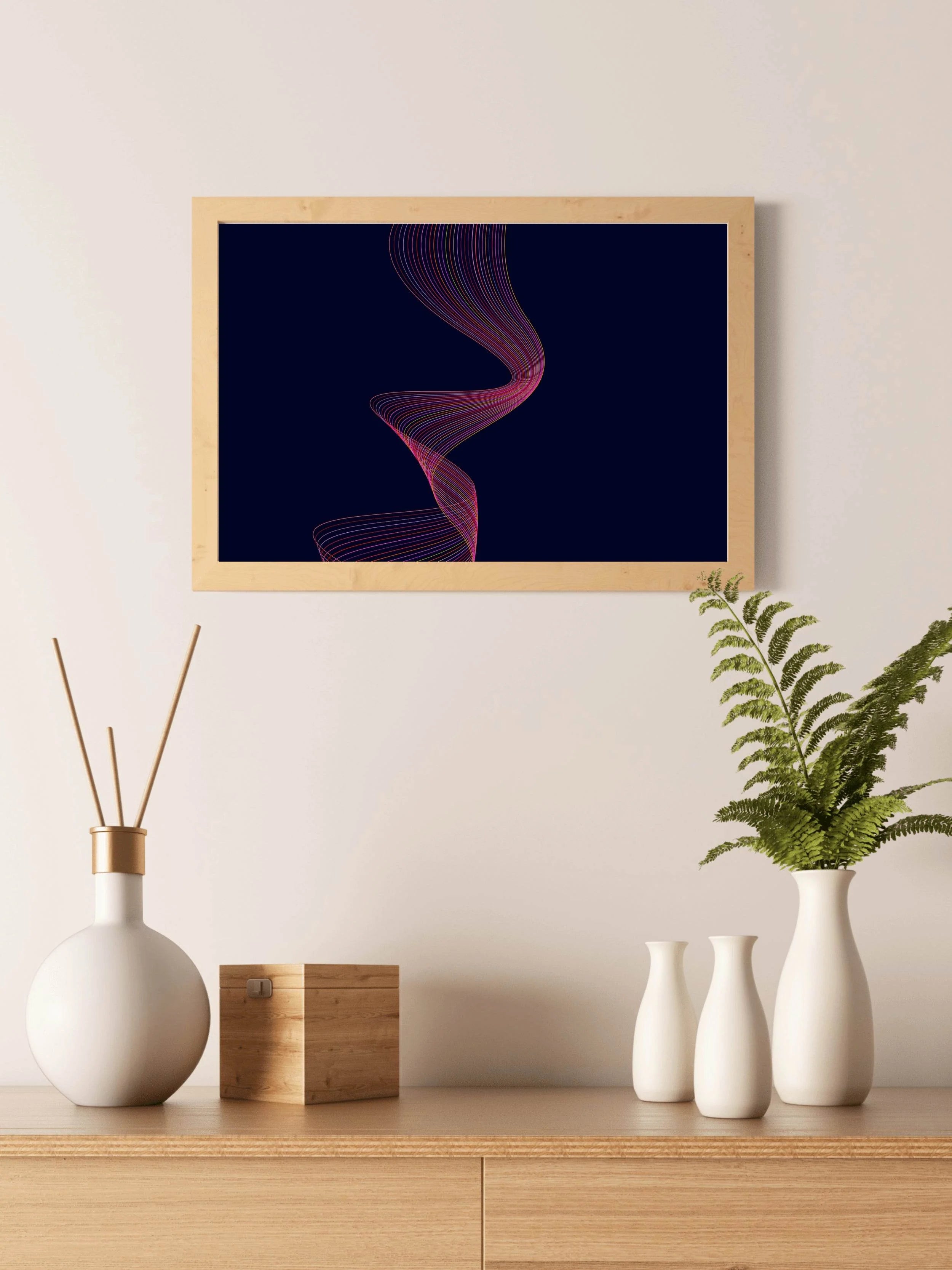 للحصول على اللمسة النهائية المثالية، أضف إطارًا خشبيًا عائمًا. يقع على بُعد 5 مم من