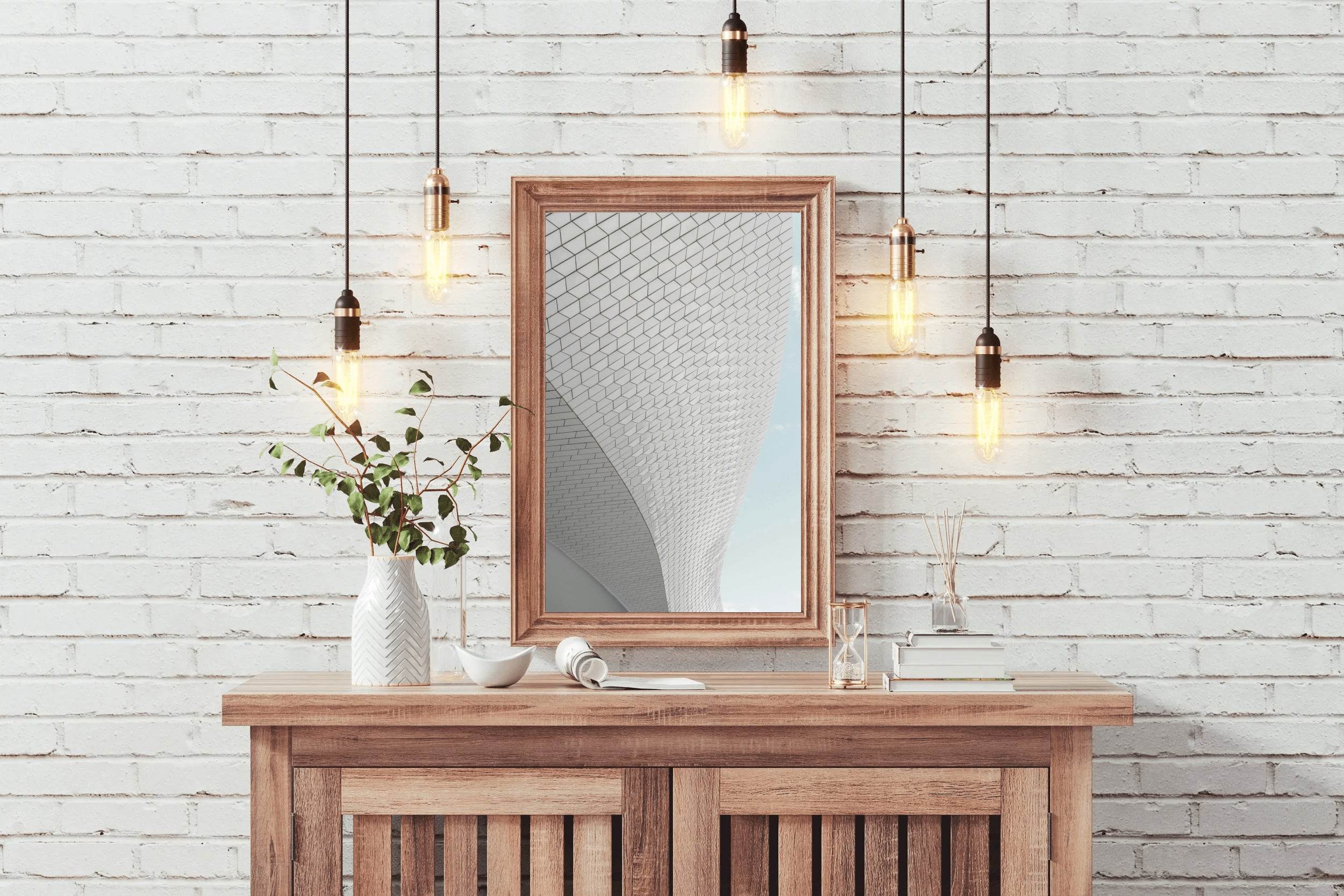 للحصول على اللمسة النهائية المثالية، أضف إطارًا خشبيًا عائمًا. يقع على بُعد 5 مم من