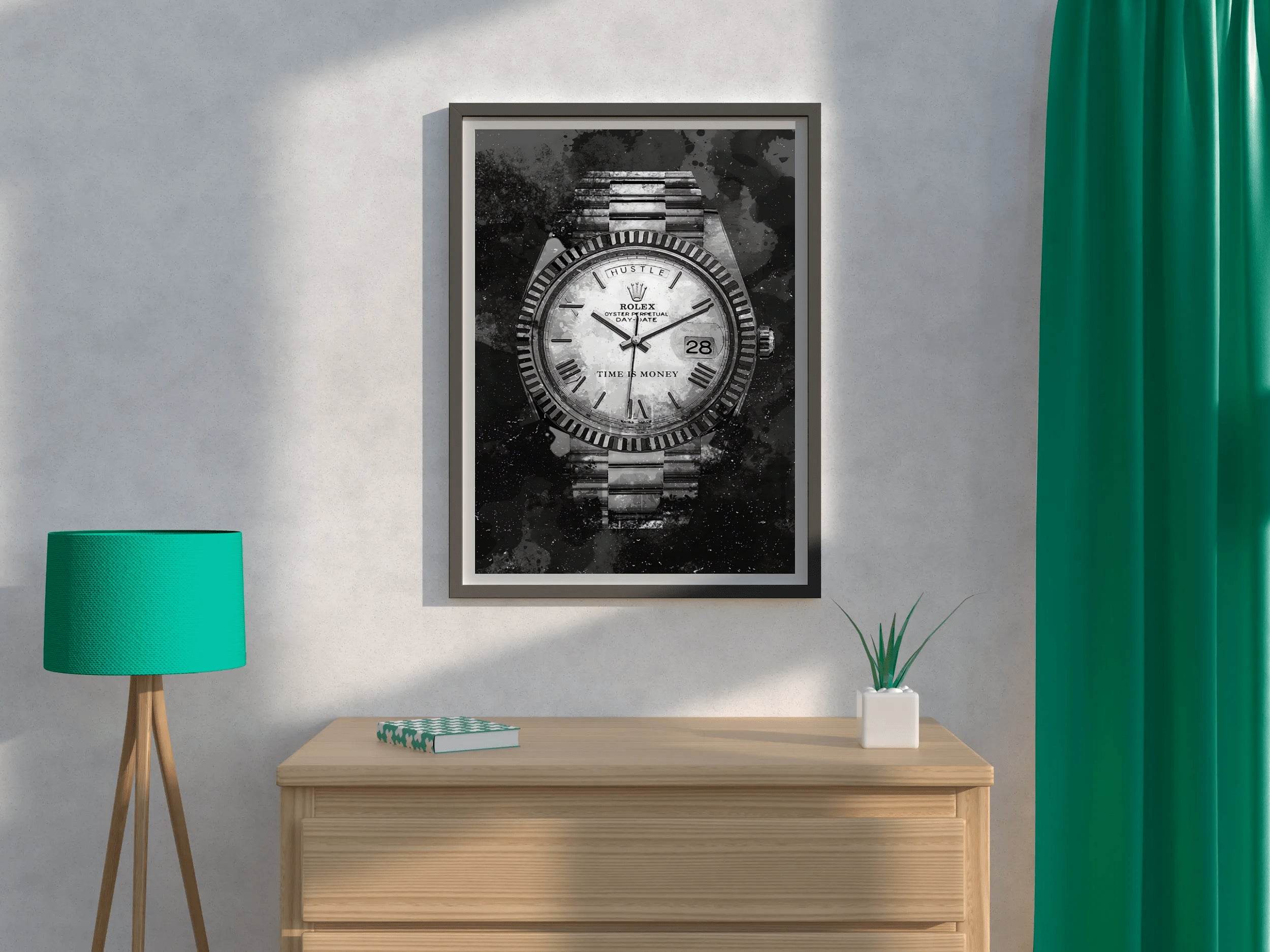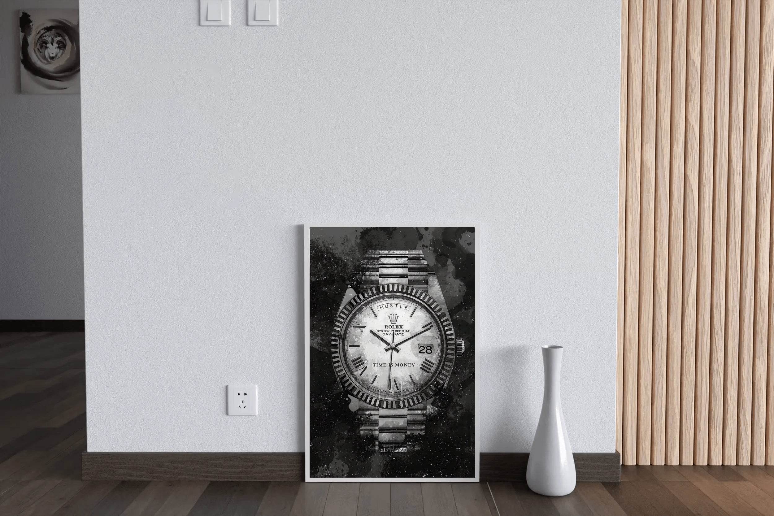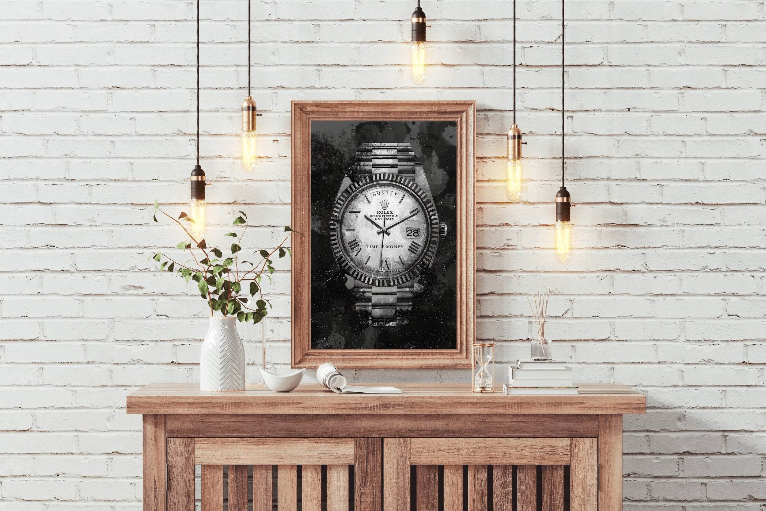 The design feels minimalistic yet powerful. If you're considering the Rolex Watch With Dark Background Wall Art, this review should help.
