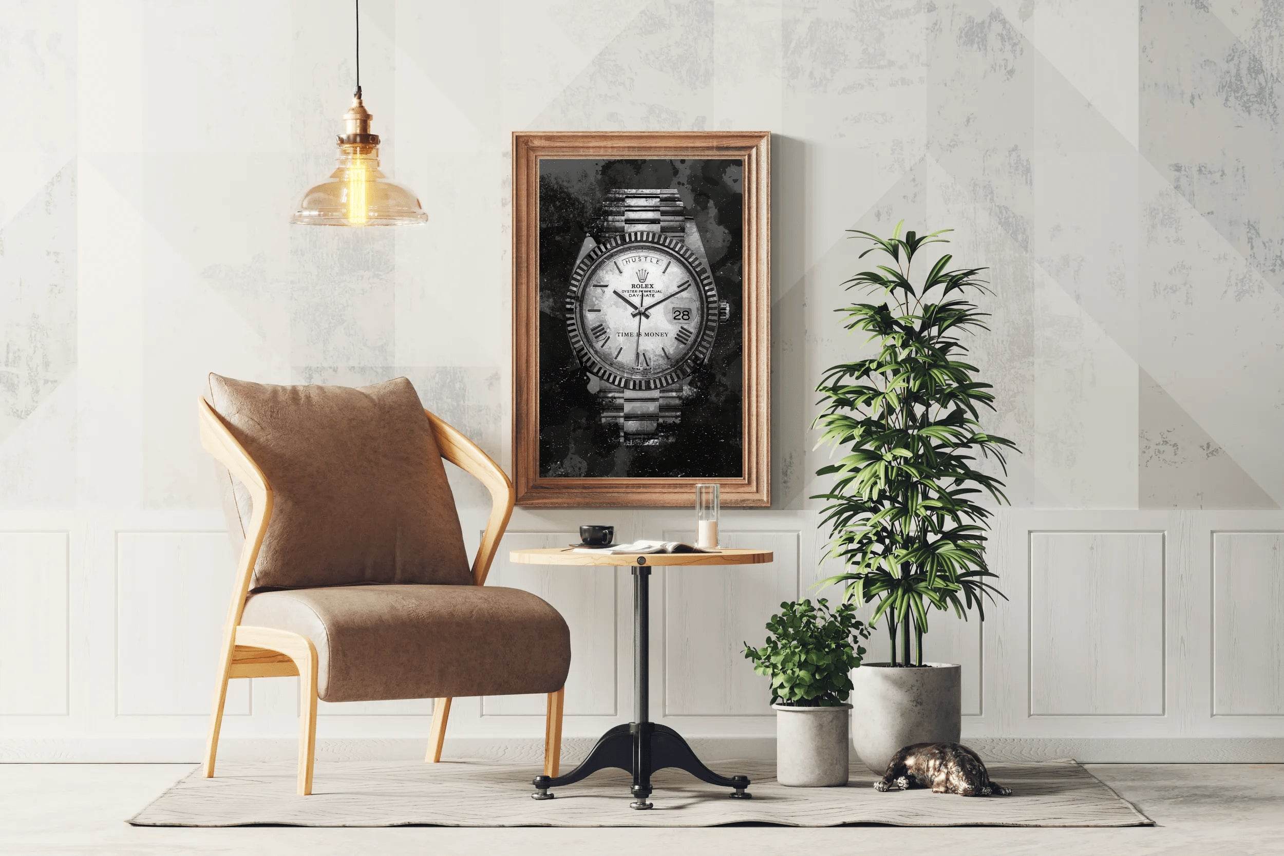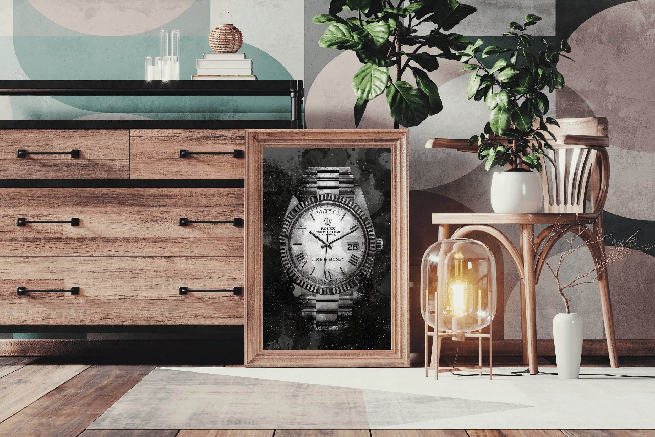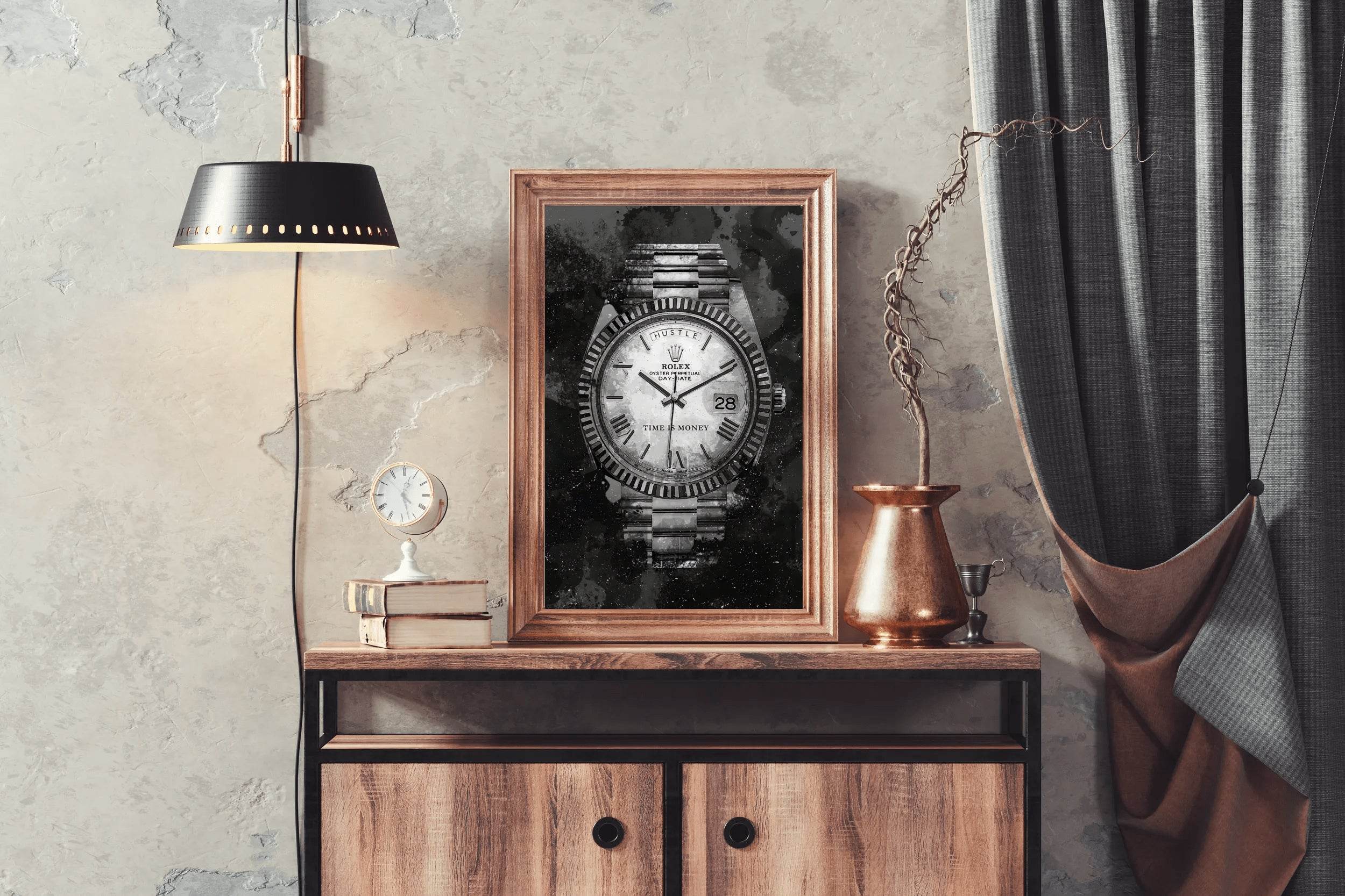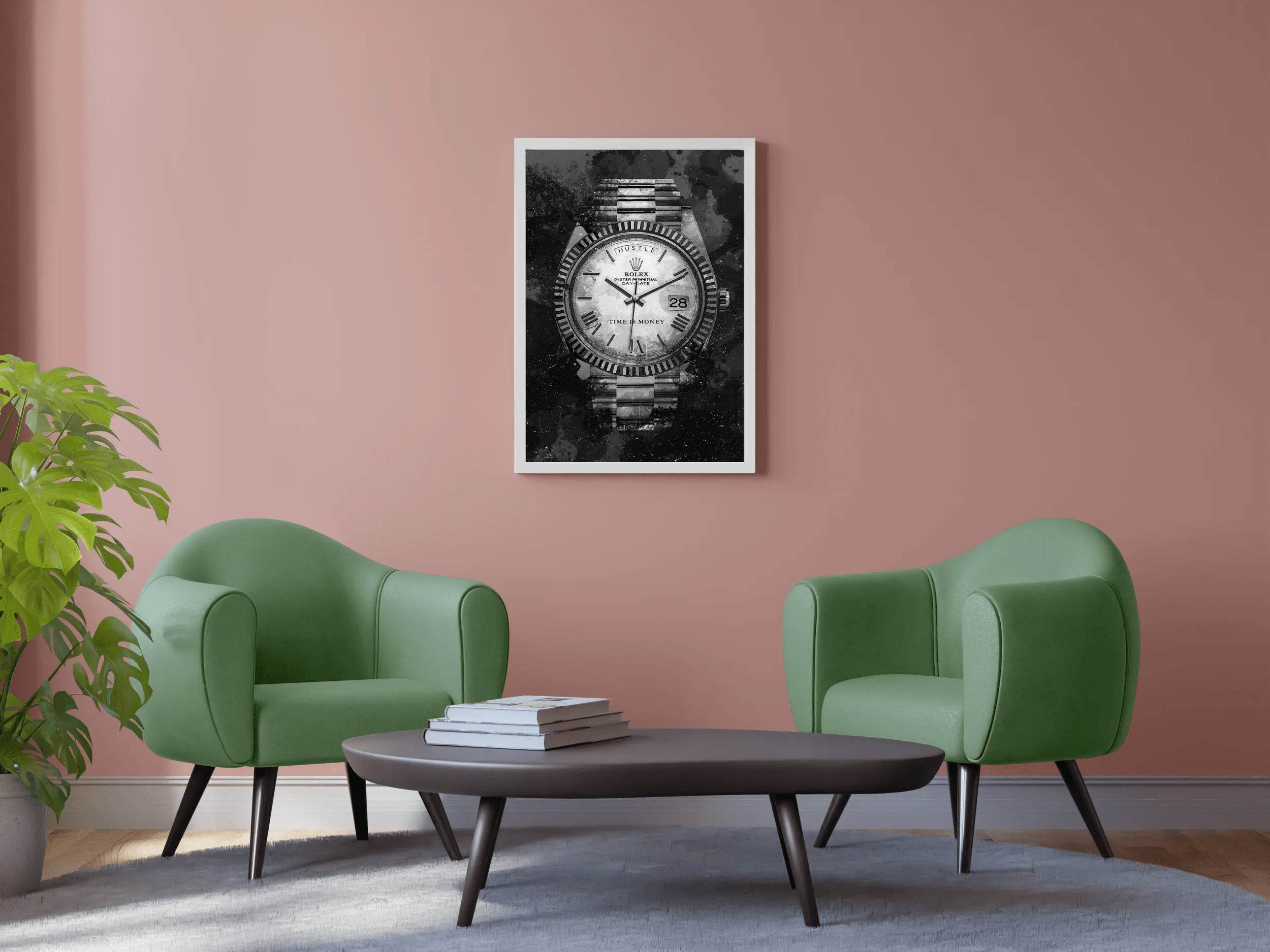 The design feels minimalistic yet powerful. If you're considering the Rolex Watch With Dark Background Wall Art, this review should help.