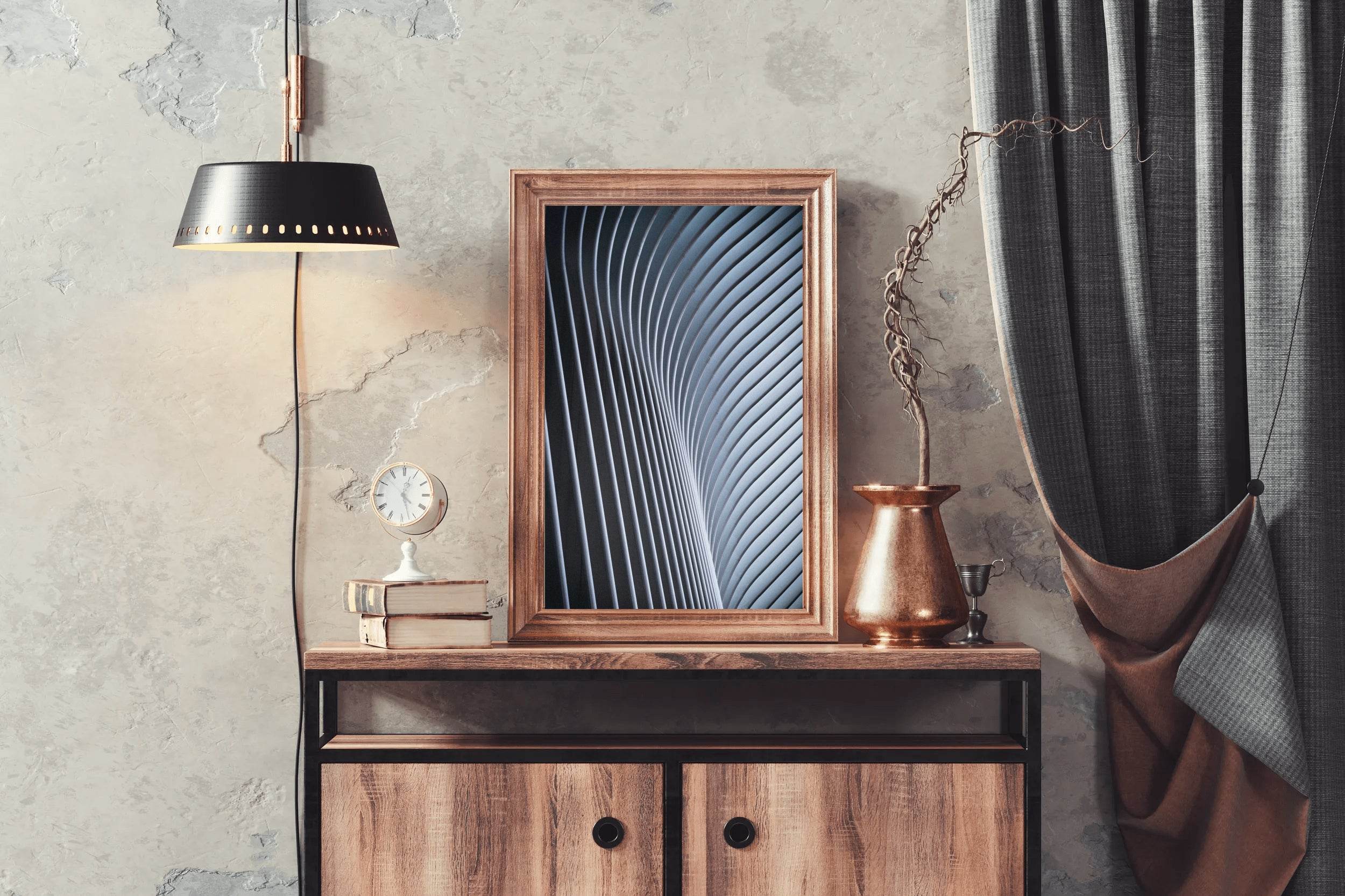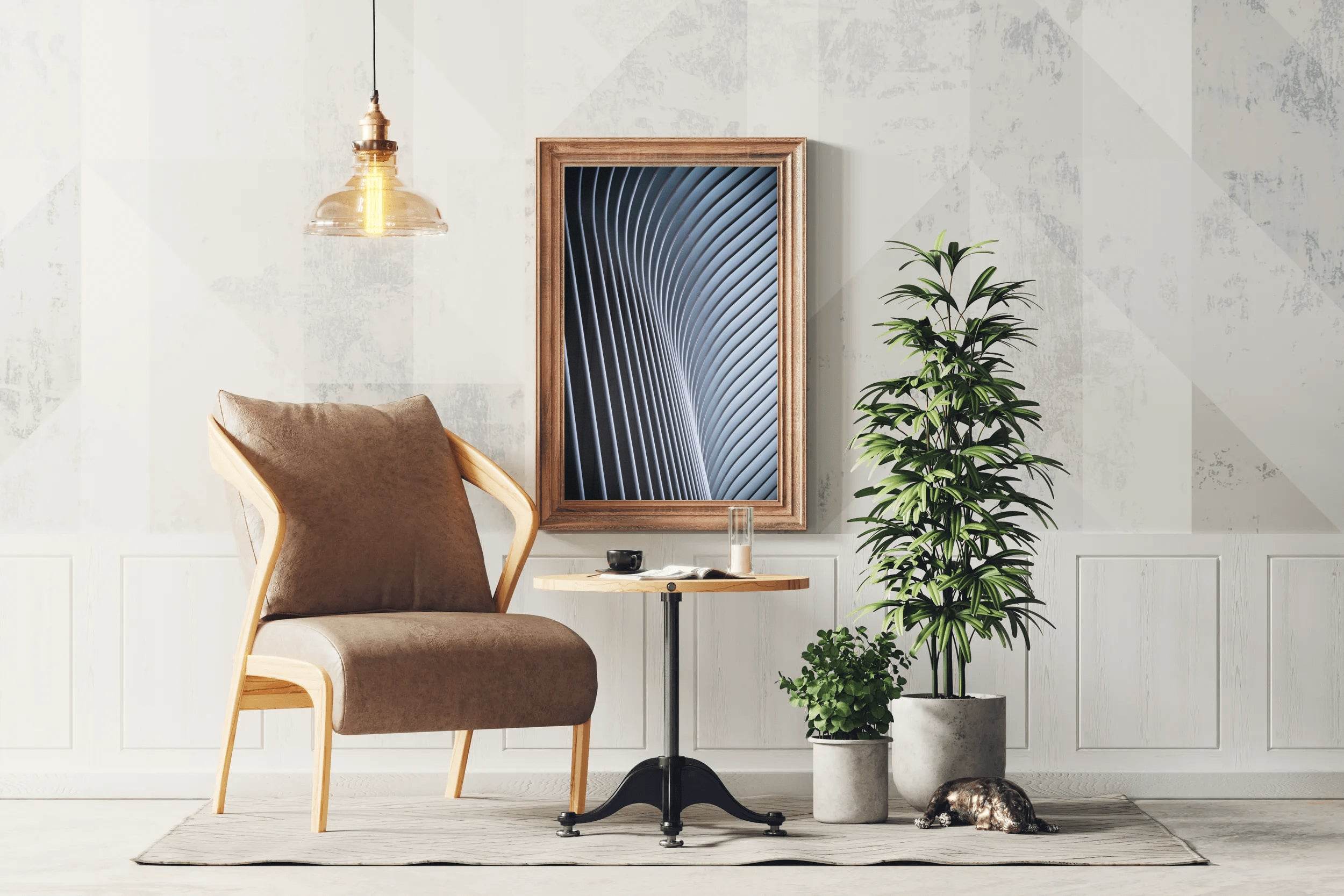للحصول على اللمسة النهائية المثالية، أضف إطارًا خشبيًا عائمًا. يقع على بُعد 5 مم من