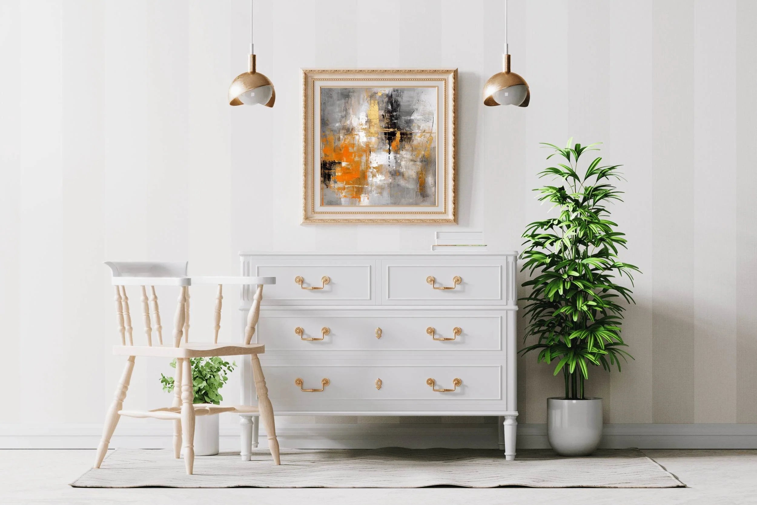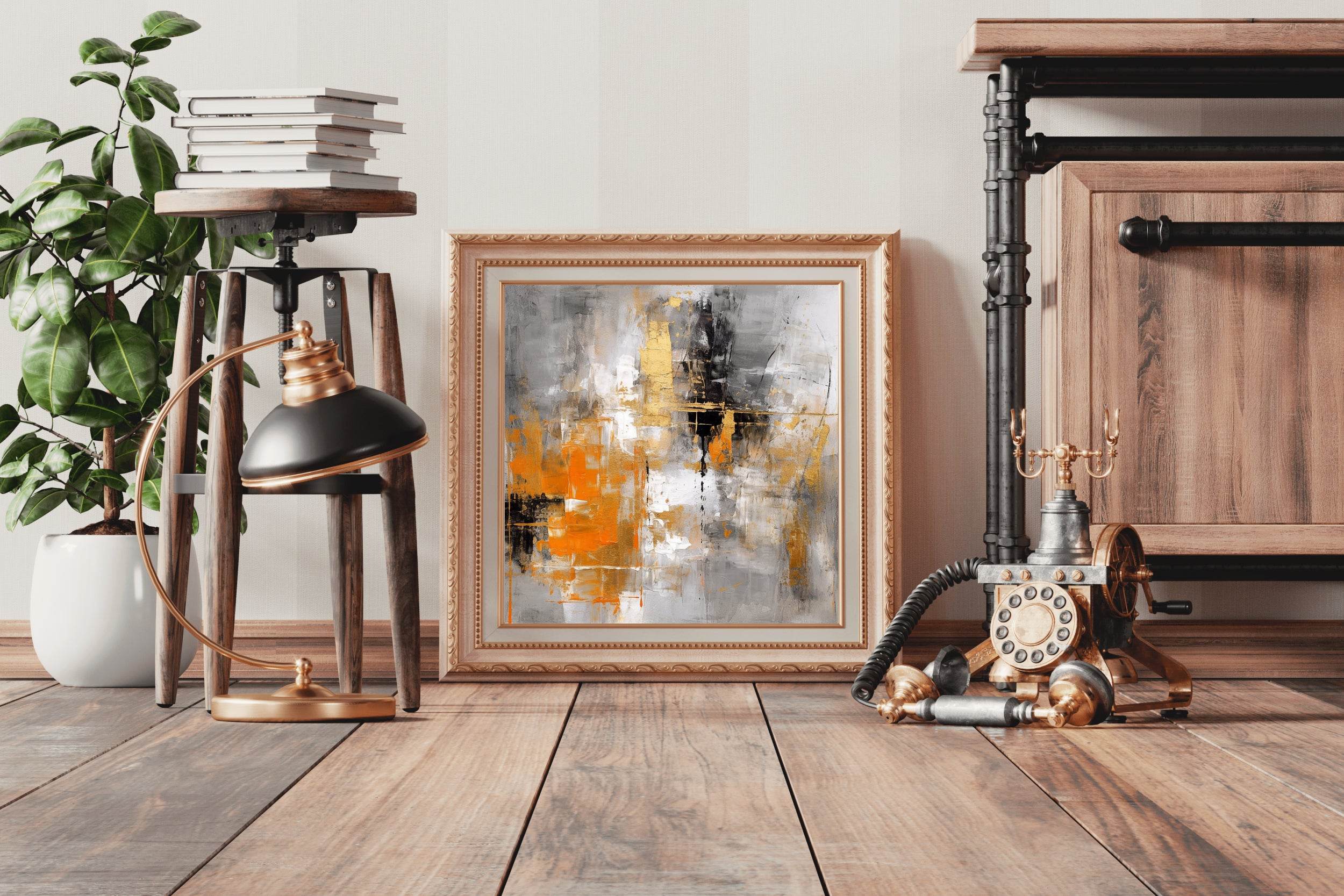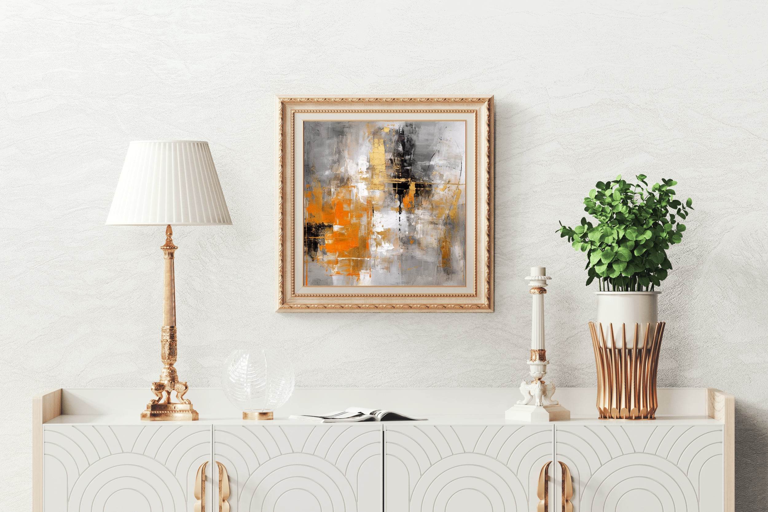 Highly recommend the Vibrant Orange and Black Brush Strokes Abstract Wall Art