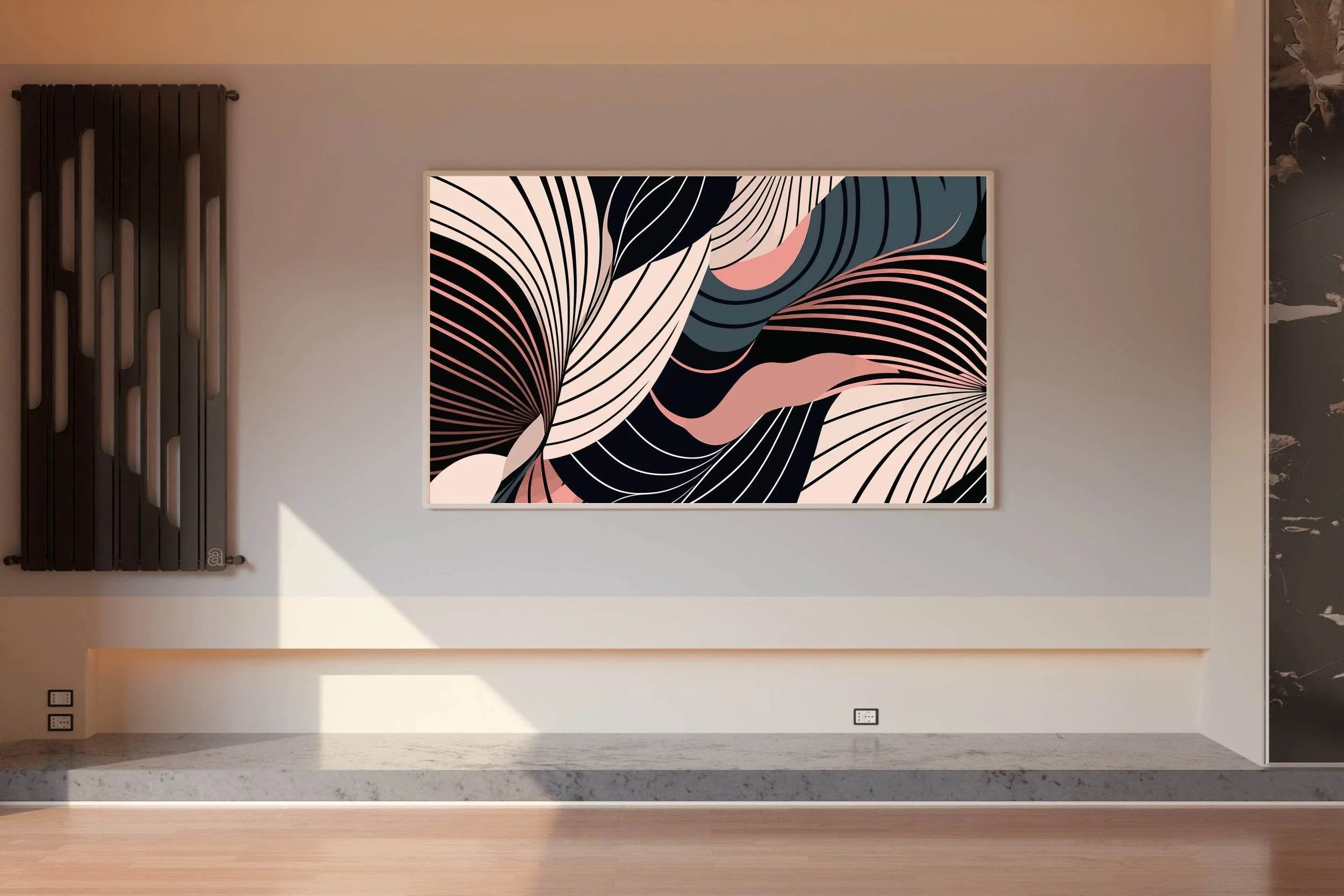 حافة القماش، والإطار يخلق حدودًا أنيقة ومظللة ترفع مستوى الفن بشكل خفي