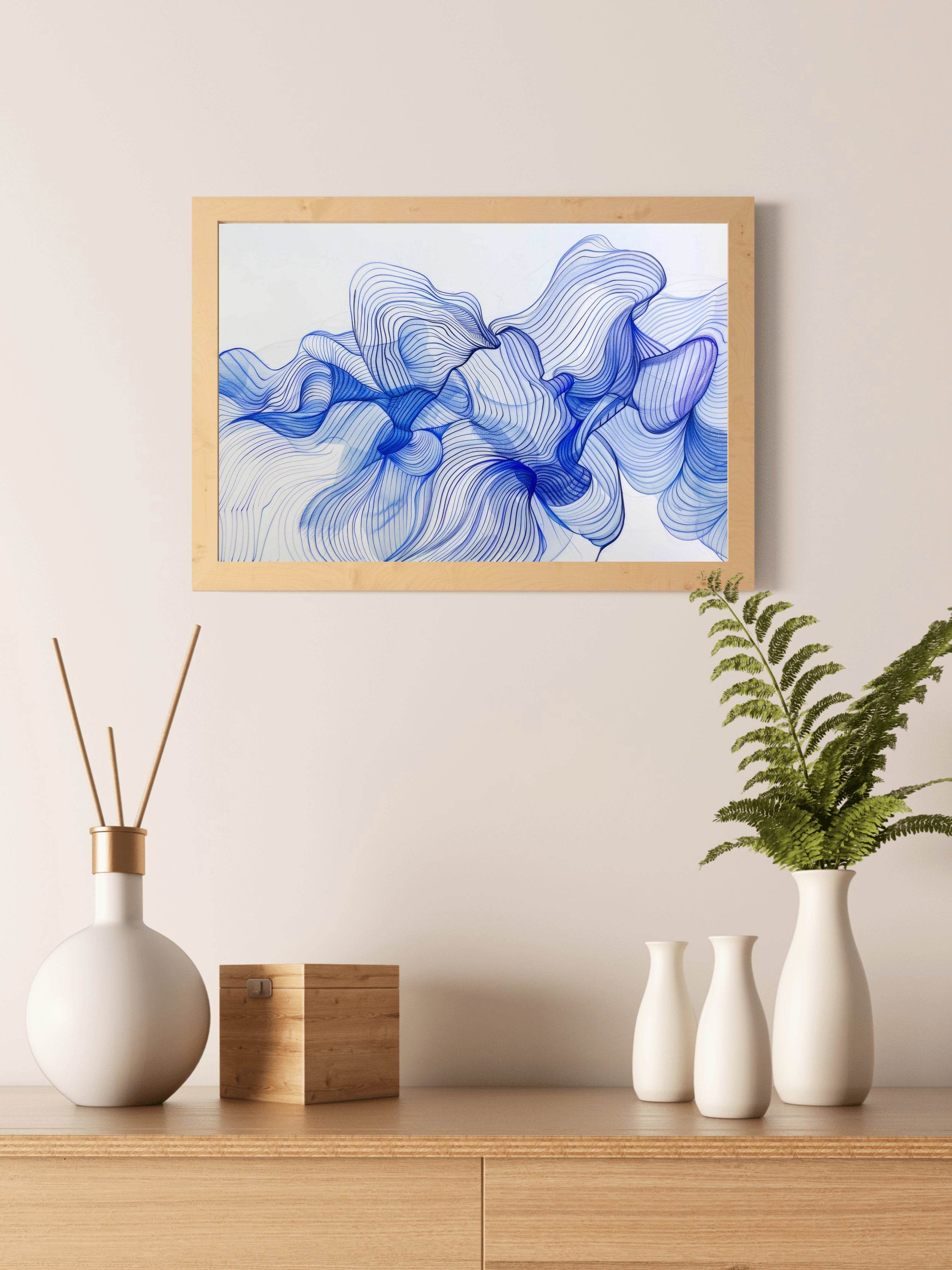 حافة القماش، والإطار يخلق حدودًا أنيقة ومظللة ترفع مستوى الفن بشكل خفي