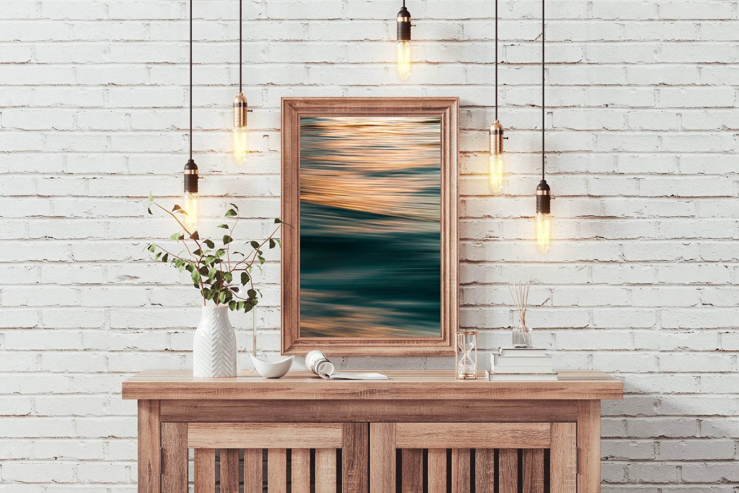 للحصول على اللمسة النهائية المثالية، أضف إطارًا خشبيًا عائمًا. يقع على بُعد 5 مم من