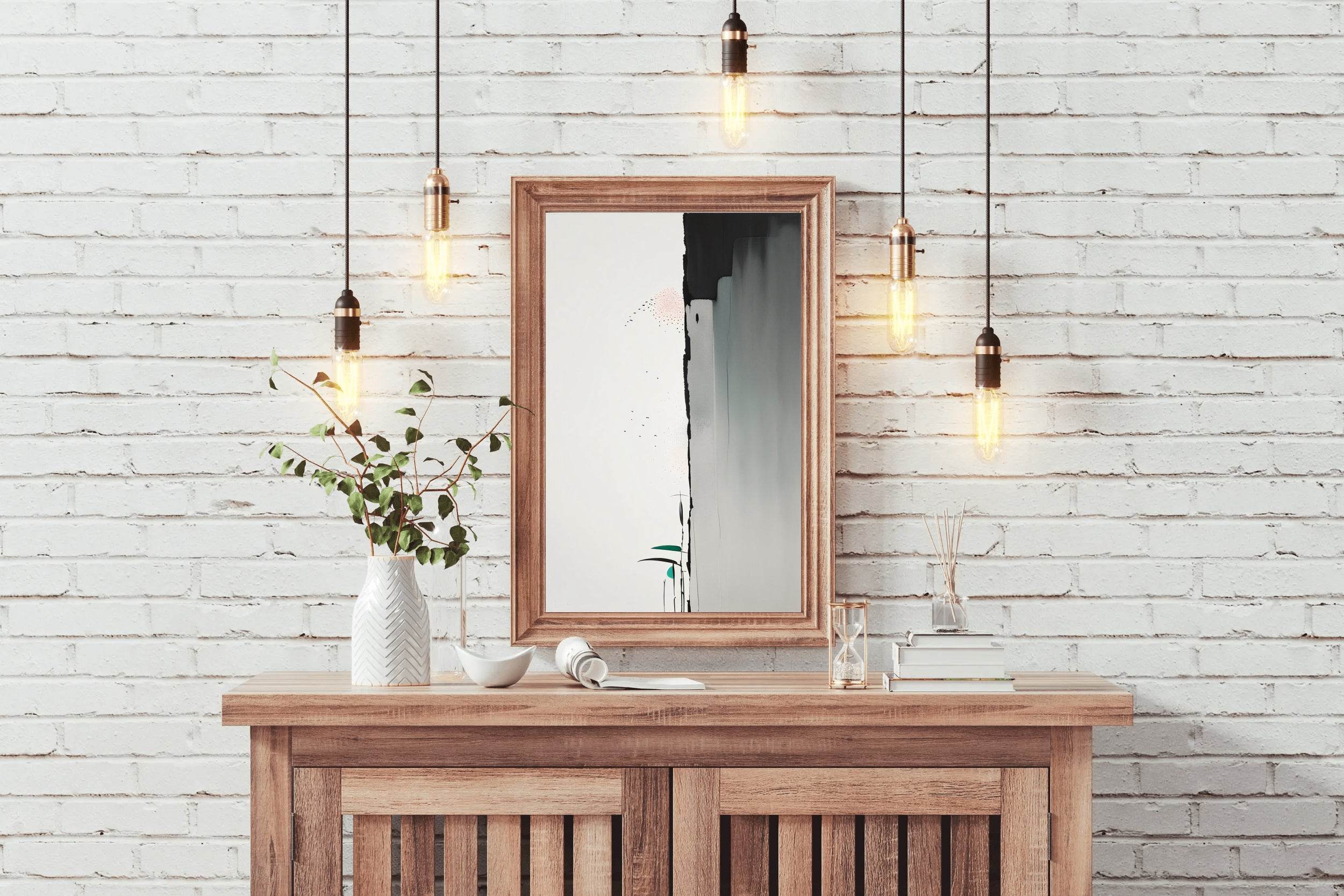 للحصول على اللمسة النهائية المثالية، أضف إطارًا خشبيًا عائمًا. يقع على بُعد 5 مم من