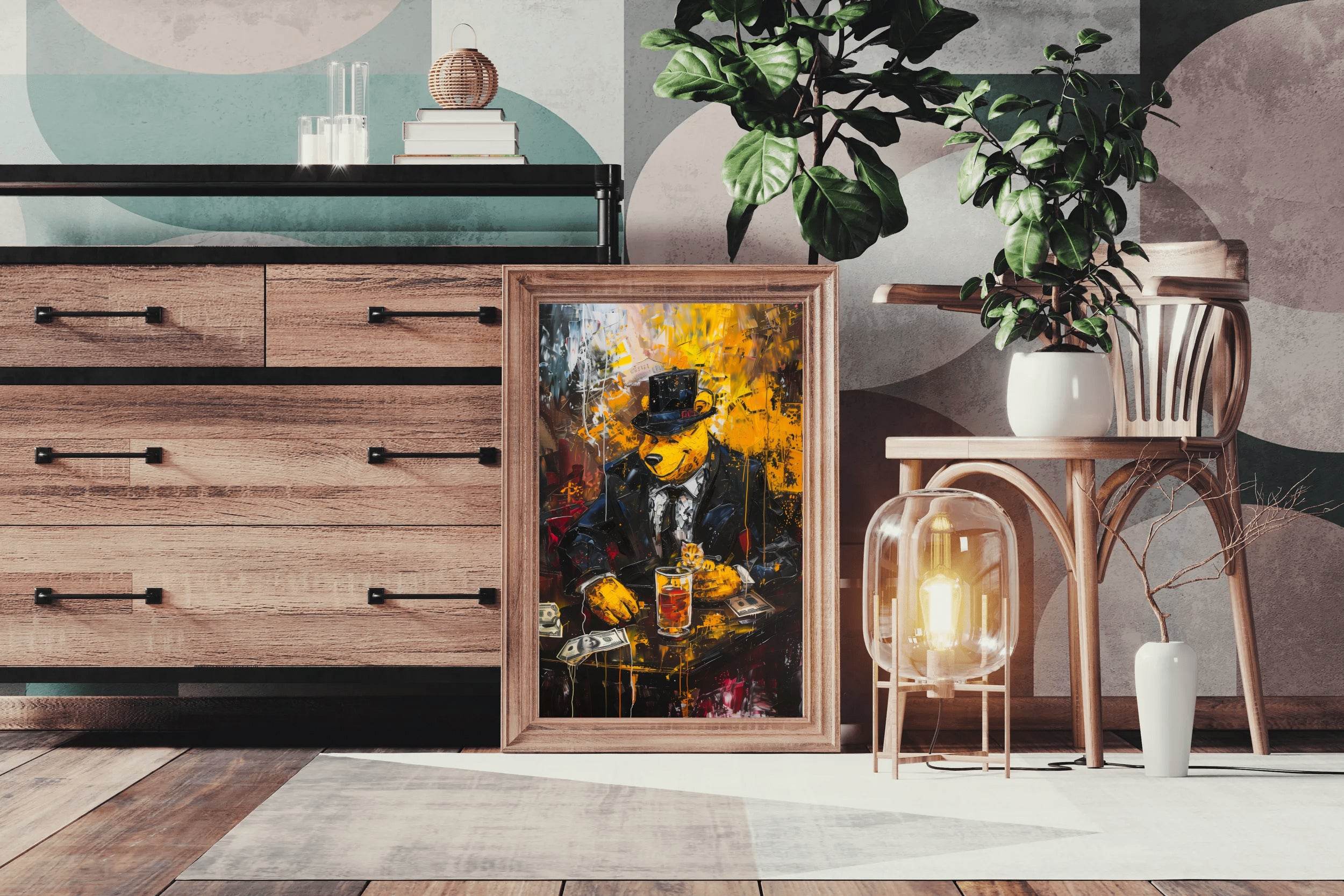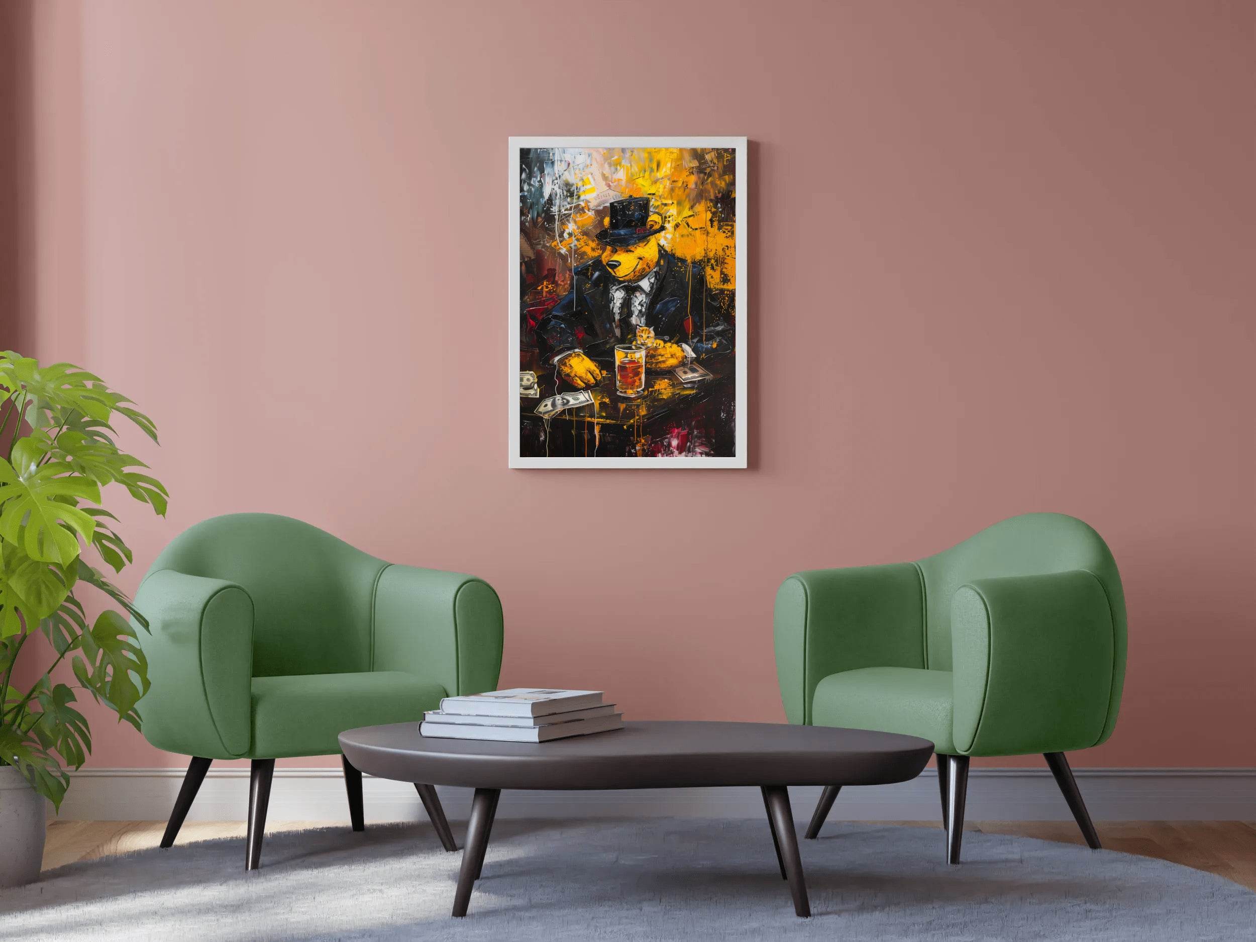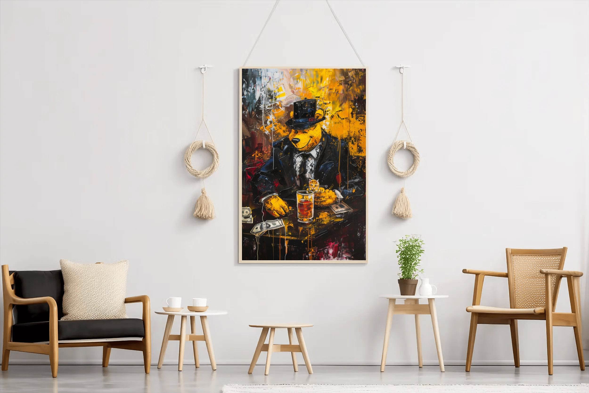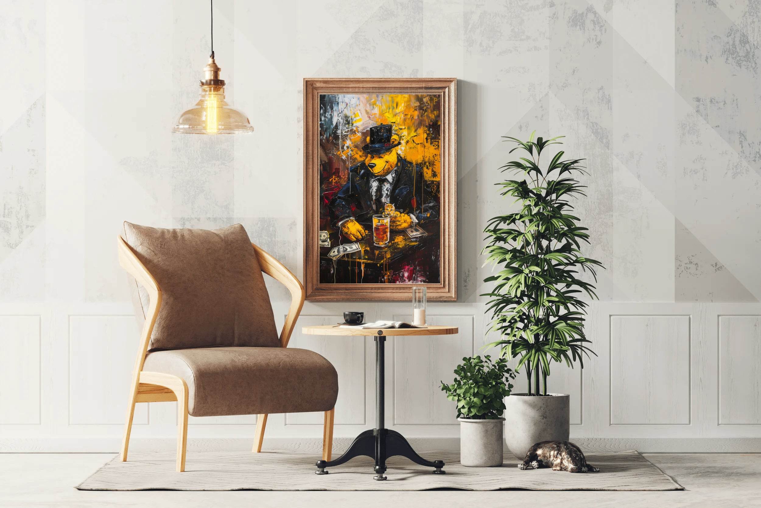 This piece adds a modern and elegant touch to my room. 24/7 customer service answered my questions quickly. If you're considering the Painting of a Bear Dressed in a Suit and Hat, this review should help.
