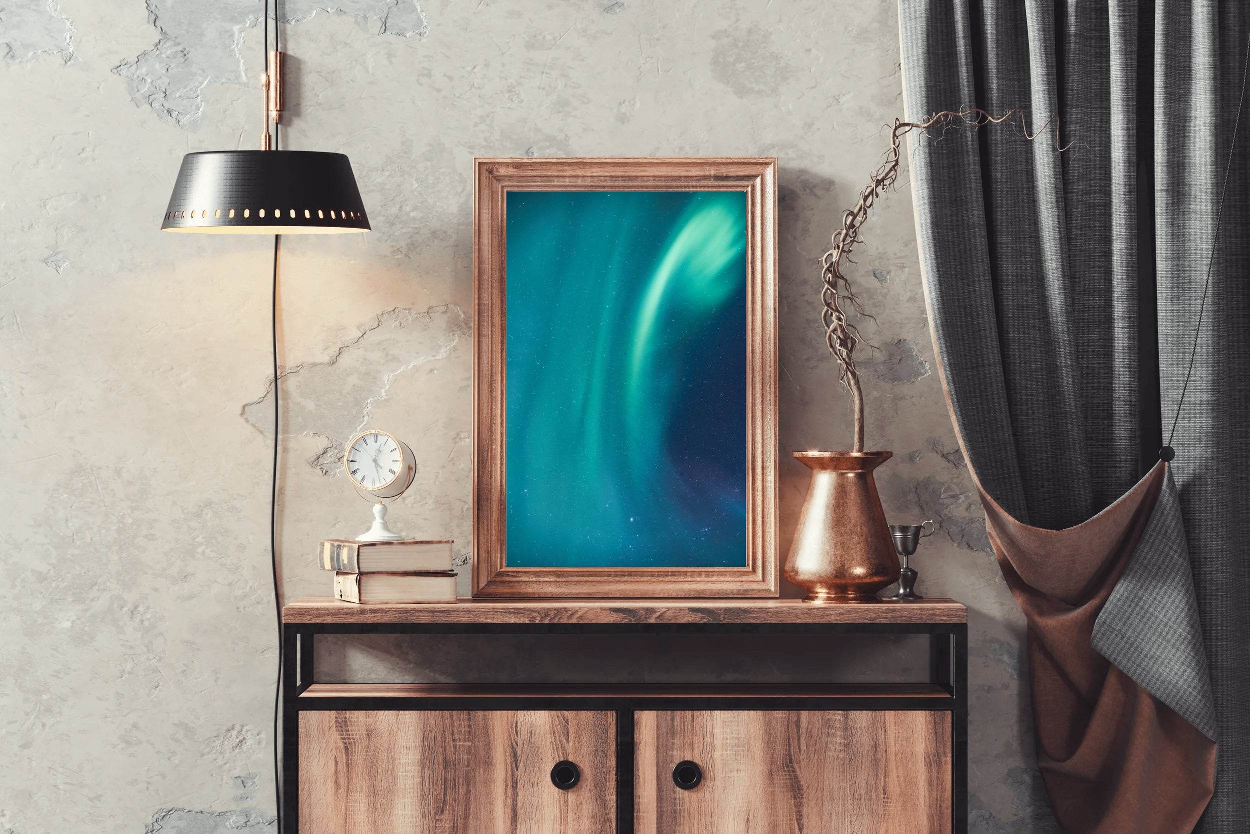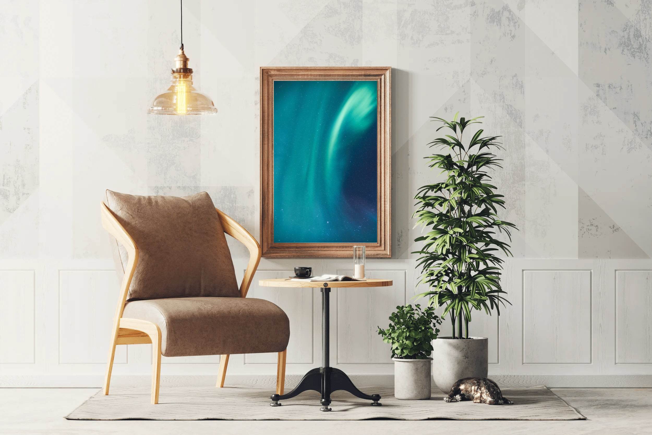 للحصول على اللمسة النهائية المثالية، أضف إطارًا خشبيًا عائمًا. يقع على بُعد 5 مم من