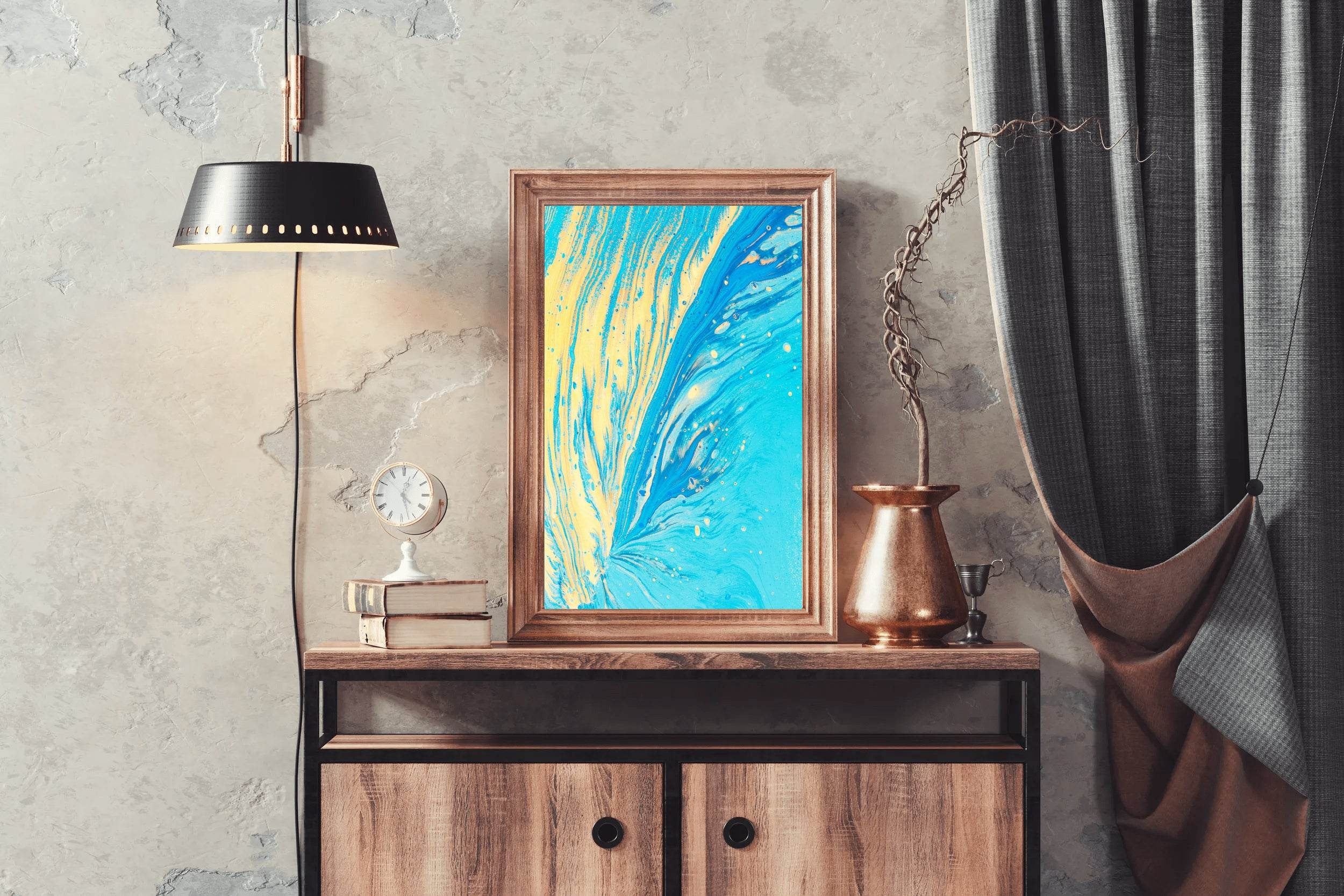 للحصول على اللمسة النهائية المثالية، أضف إطارًا خشبيًا عائمًا. يقع على بُعد 5 مم من