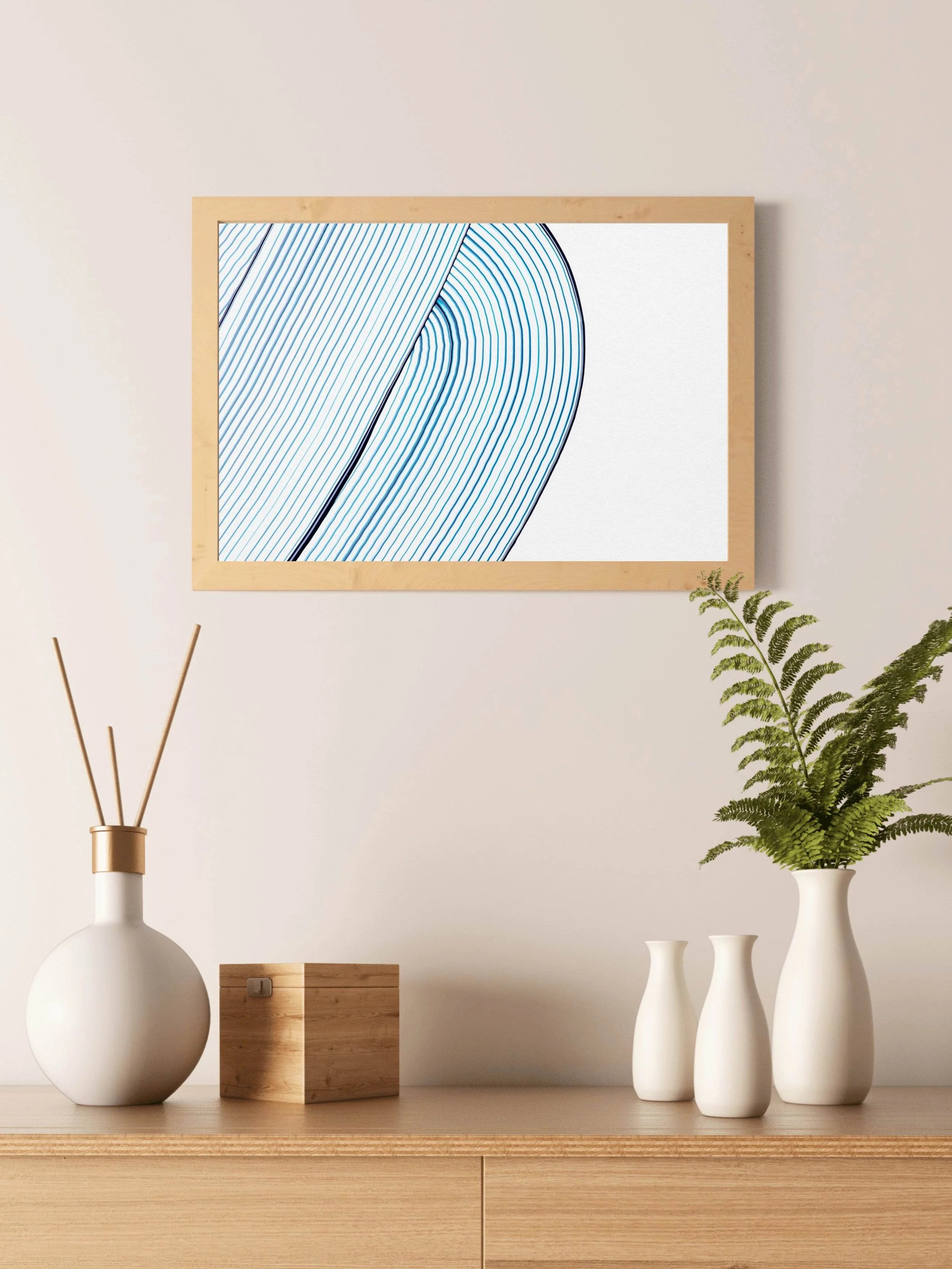 حافة القماش، والإطار يخلق حدودًا أنيقة ومظللة ترفع مستوى الفن بشكل خفي