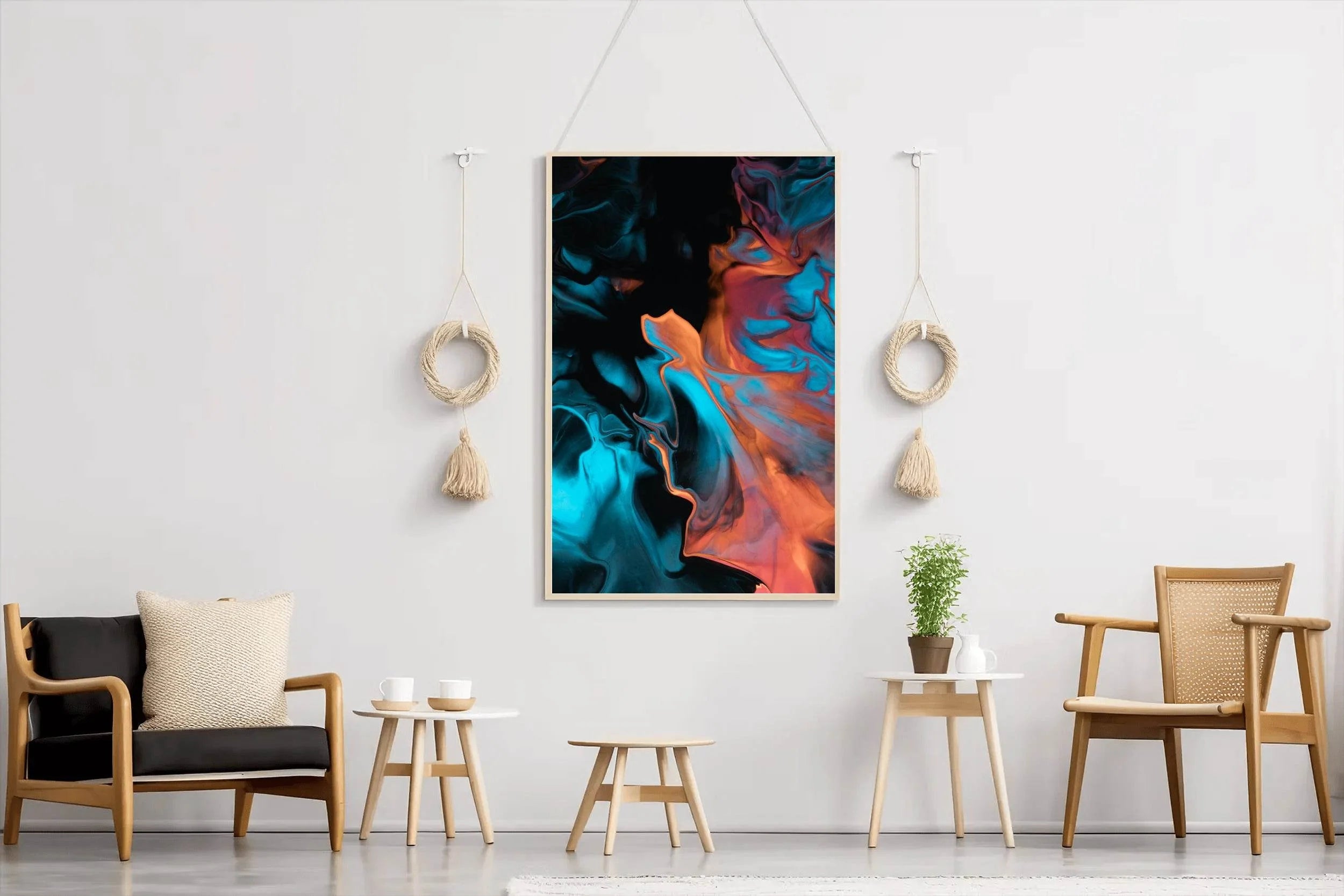 حافة القماش، والإطار يخلق حدودًا أنيقة ومظللة ترفع مستوى الفن بشكل خفي