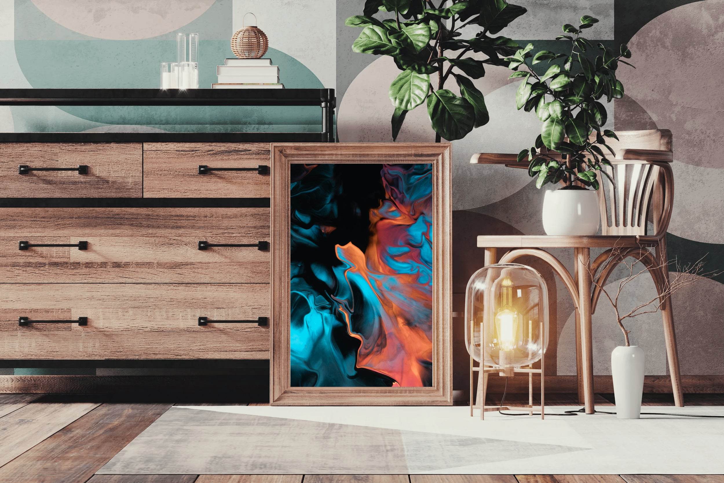 للحصول على اللمسة النهائية المثالية، أضف إطارًا خشبيًا عائمًا. يقع على بُعد 5 مم من