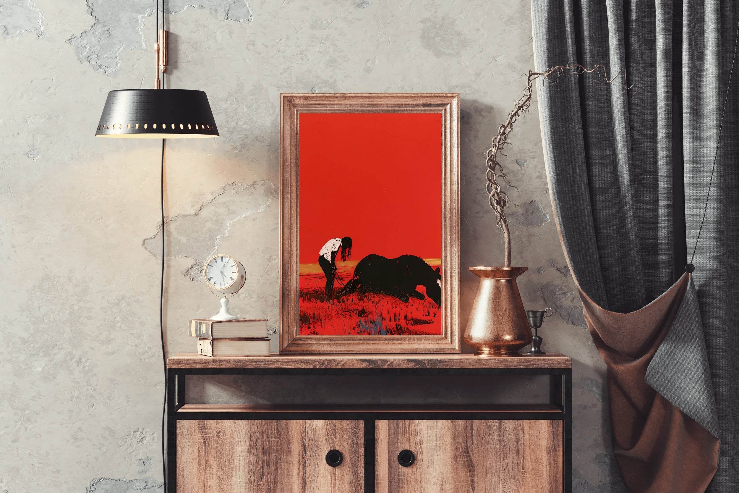 The colors in this artwork are vibrant and uplifting. If you're considering the Sick Black Horse Wall Art, this review should help.