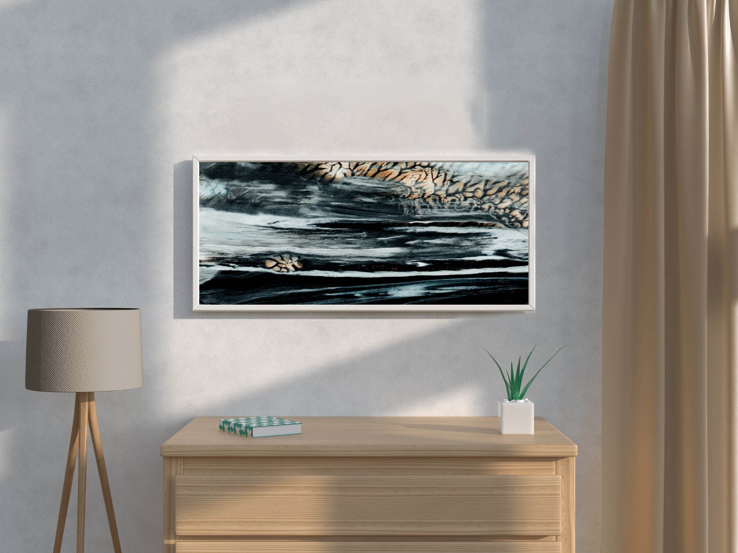 للحصول على اللمسة النهائية المثالية، أضف إطارًا خشبيًا عائمًا. يقع على بُعد 5 مم من