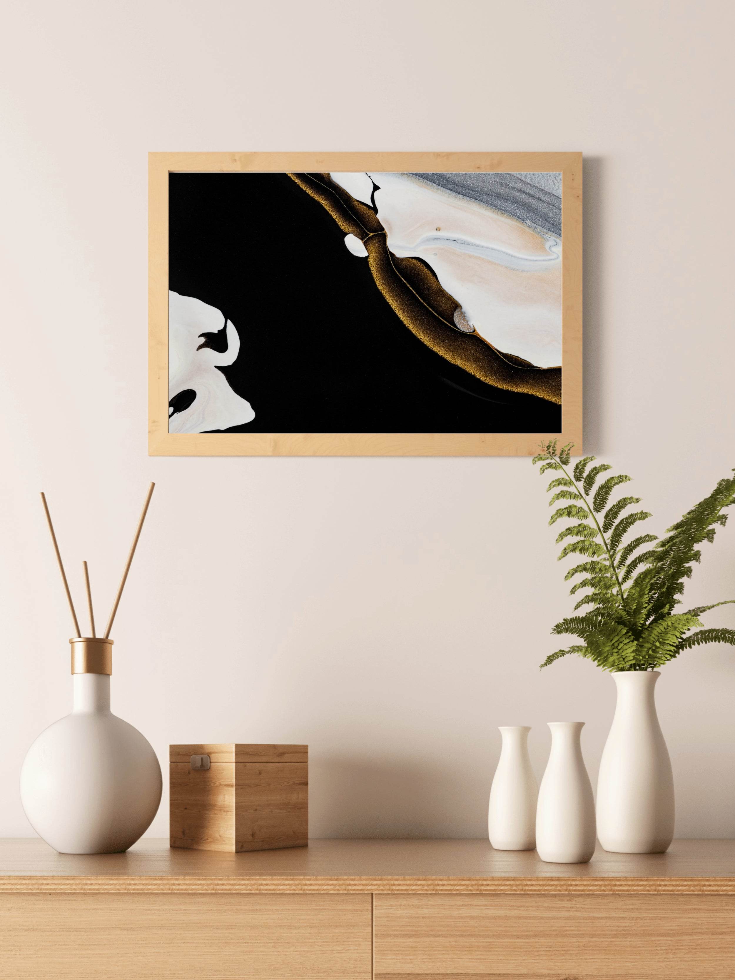 للحصول على اللمسة النهائية المثالية، أضف إطارًا خشبيًا عائمًا. يقع على بُعد 5 مم من