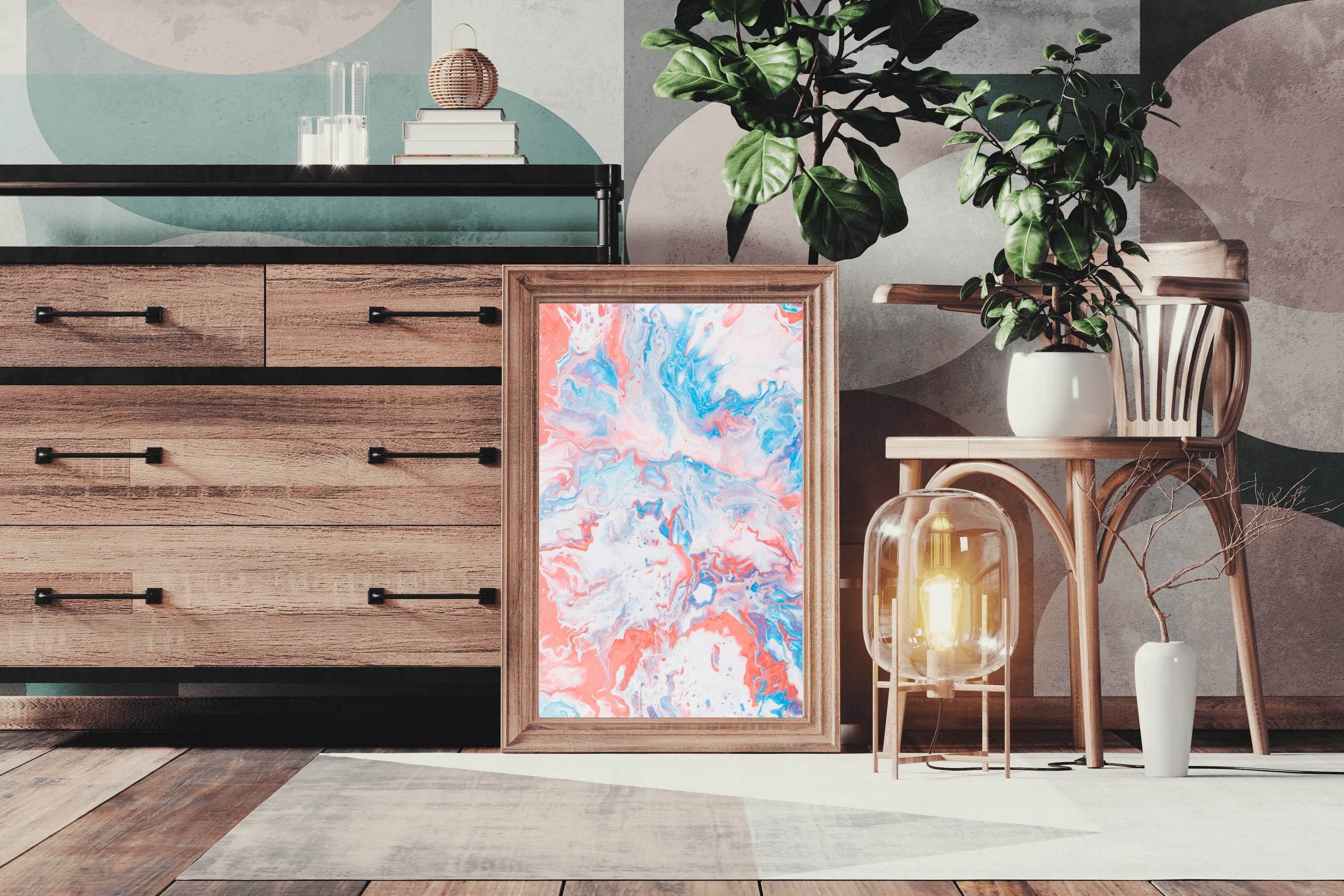 للحصول على اللمسة النهائية المثالية، أضف إطارًا خشبيًا عائمًا. يقع على بُعد 5 مم من