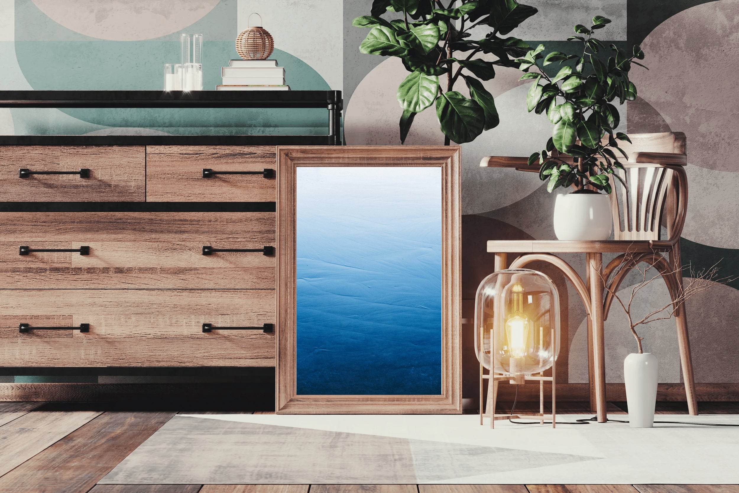 للحصول على اللمسة النهائية المثالية، أضف إطارًا خشبيًا عائمًا. يقع على بُعد 5 مم من