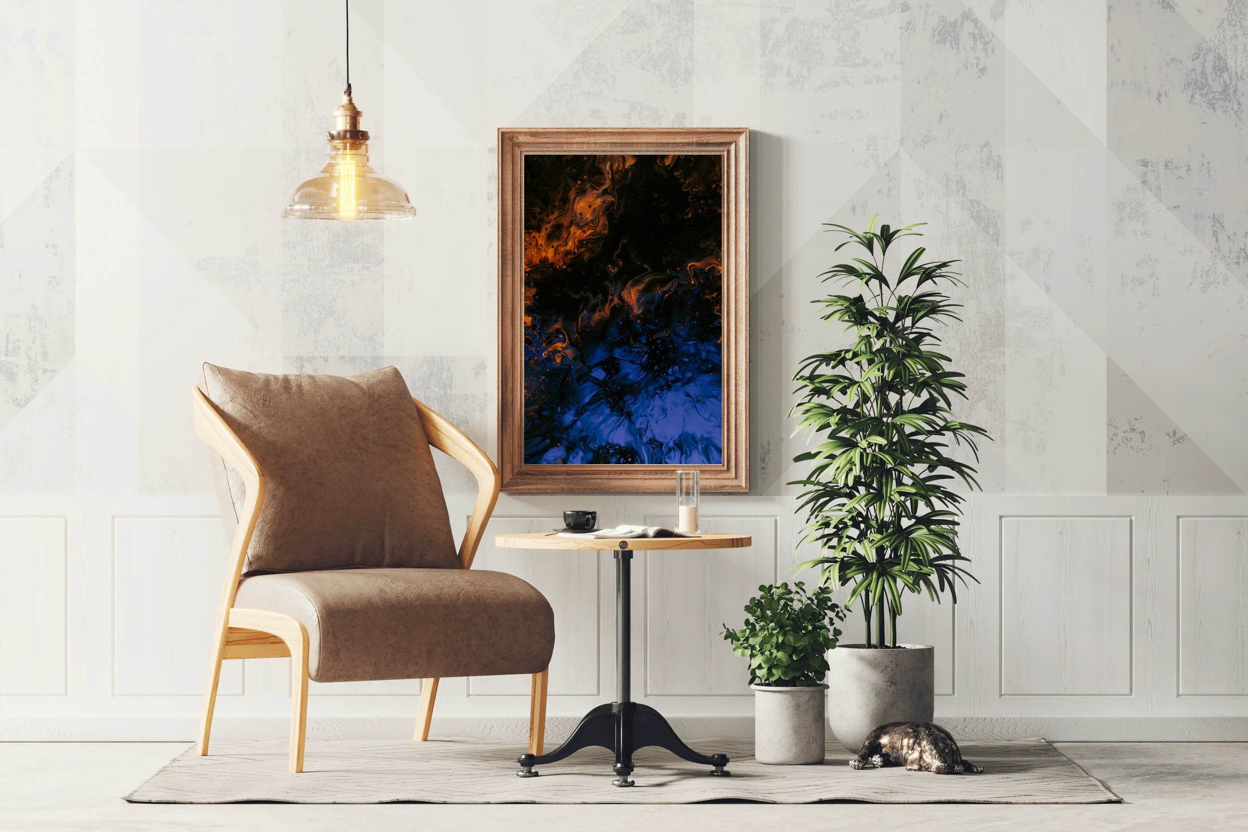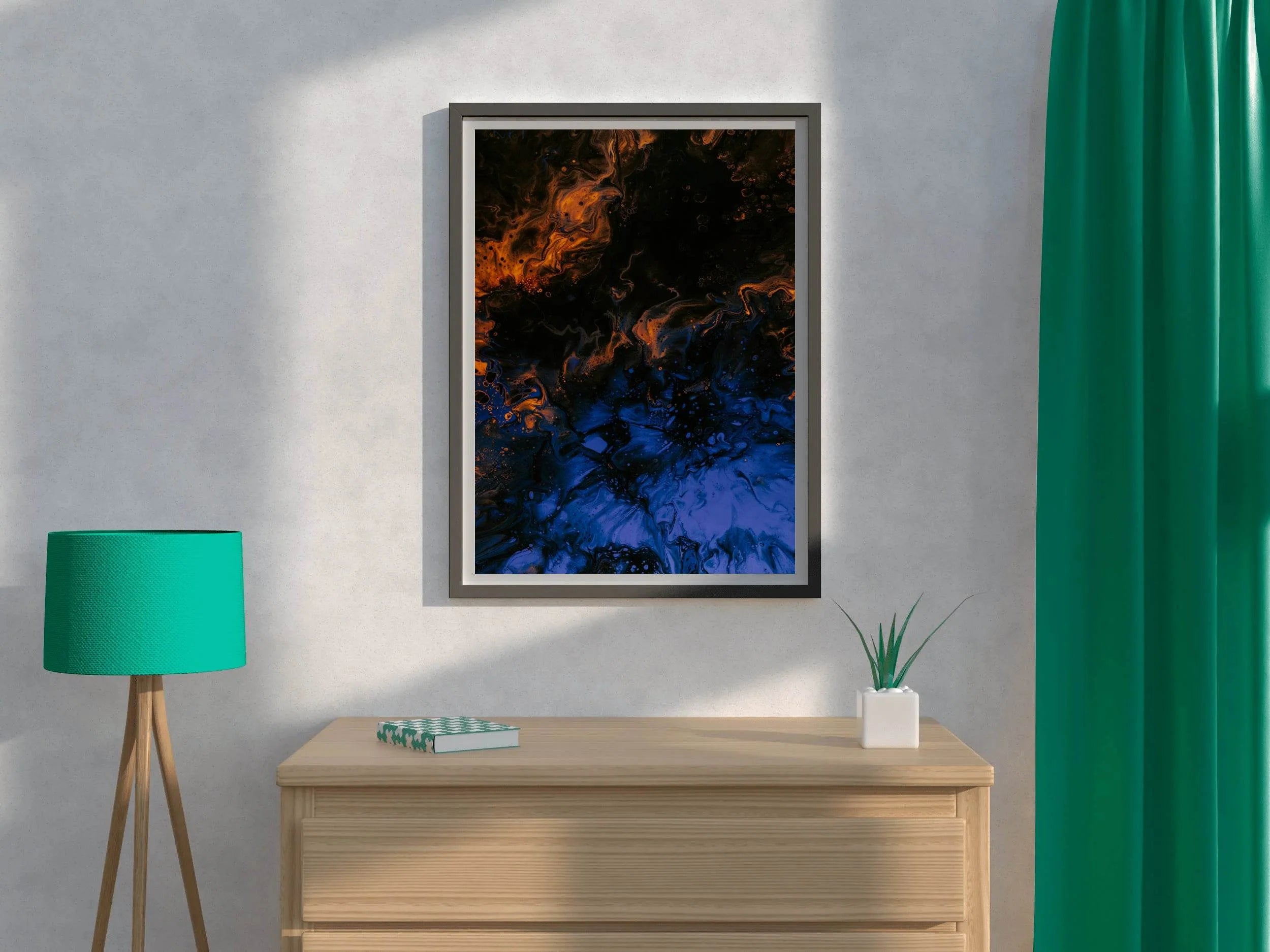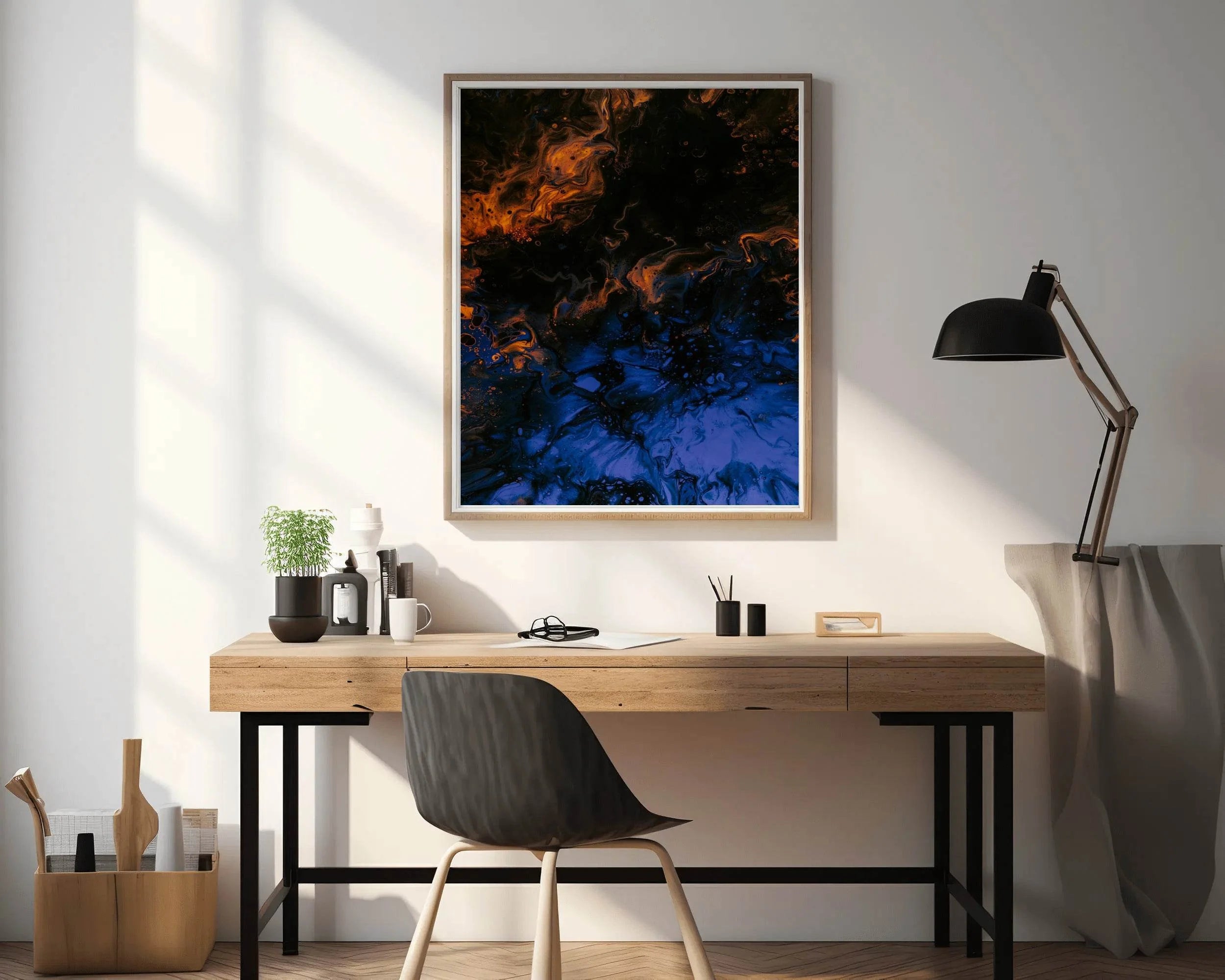 Perfect upgrade to Blue-and-Fire-Oil-Paint-Abstract-Wall-Art