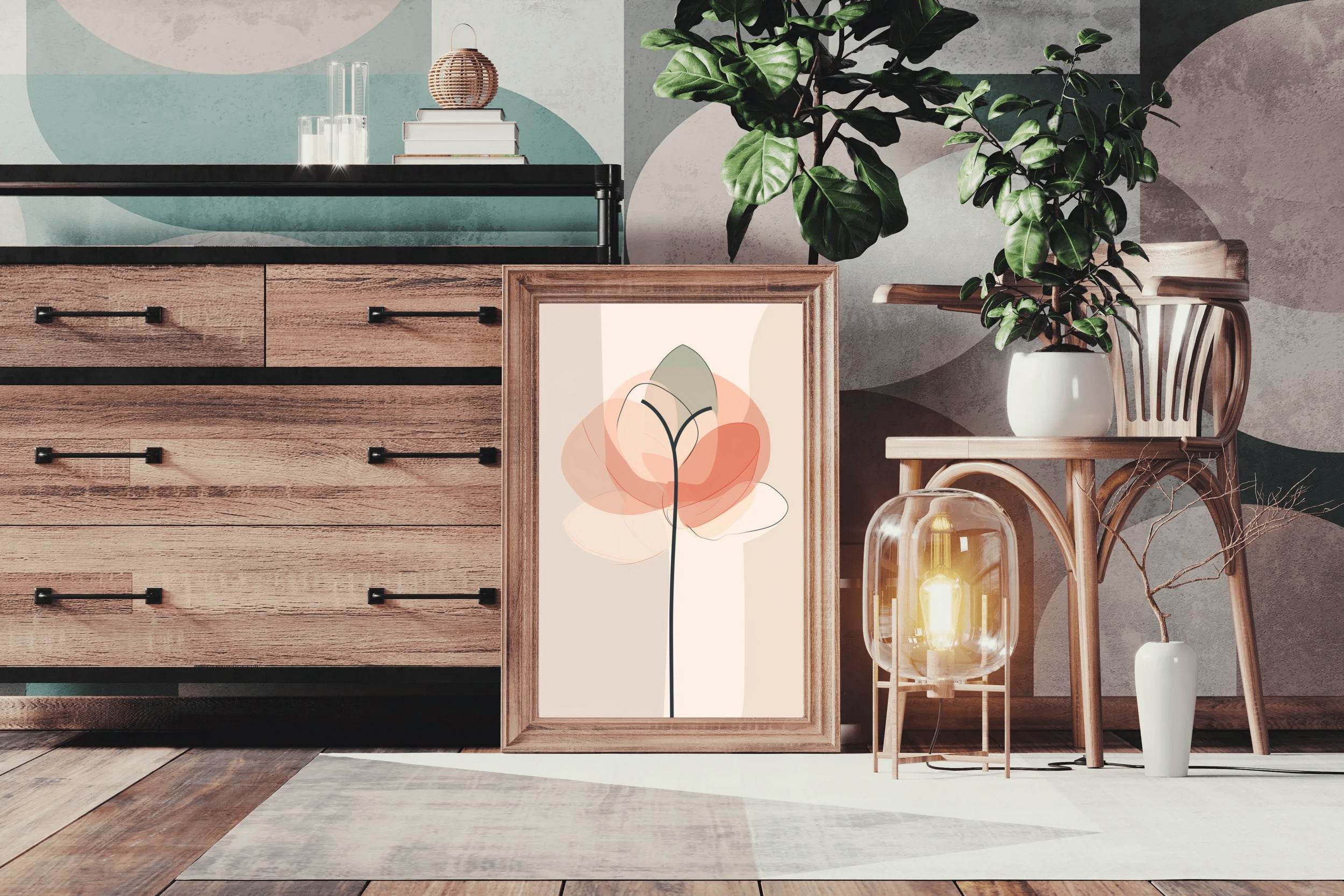 للحصول على اللمسة النهائية المثالية، أضف إطارًا خشبيًا عائمًا. يقع على بُعد 5 مم من