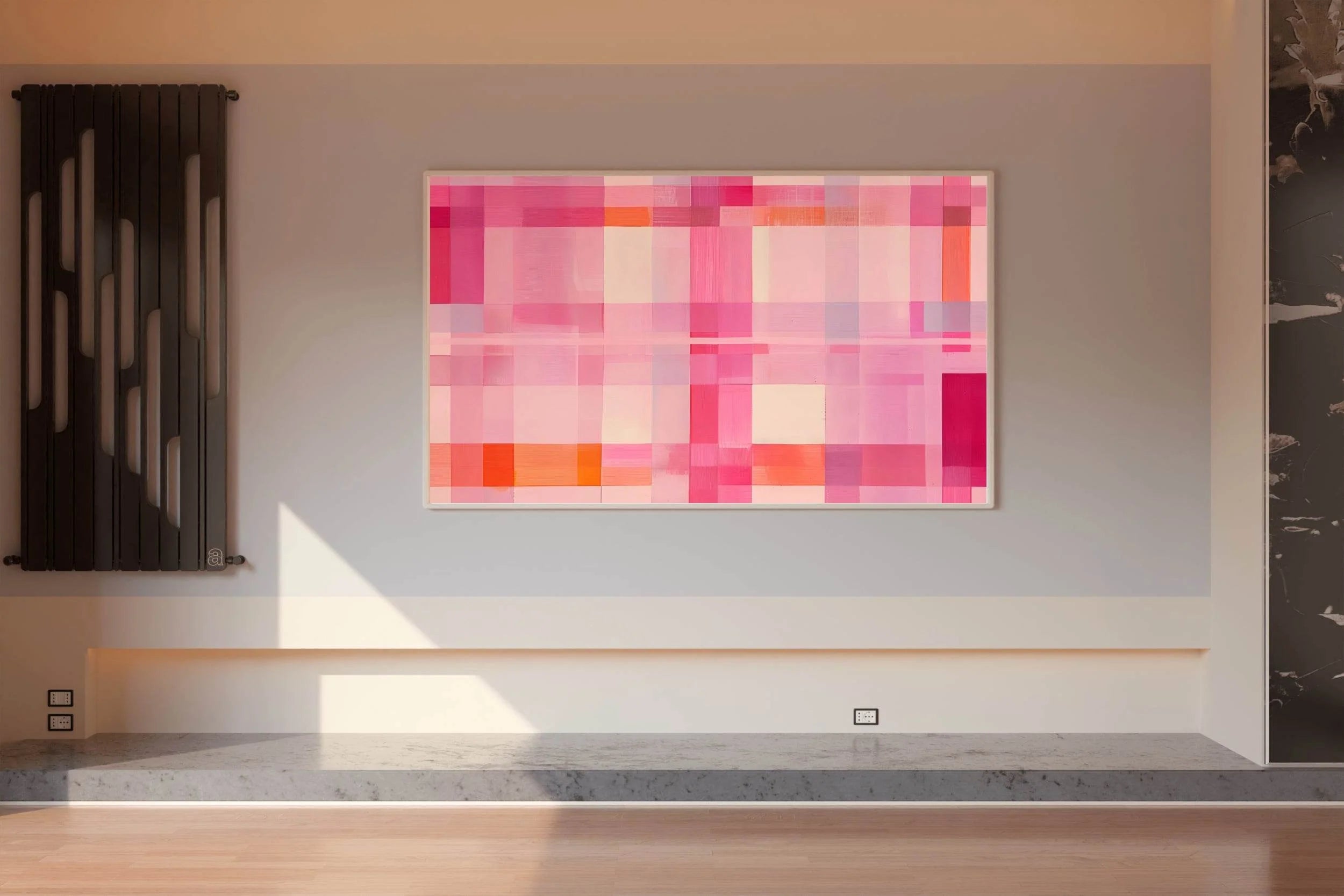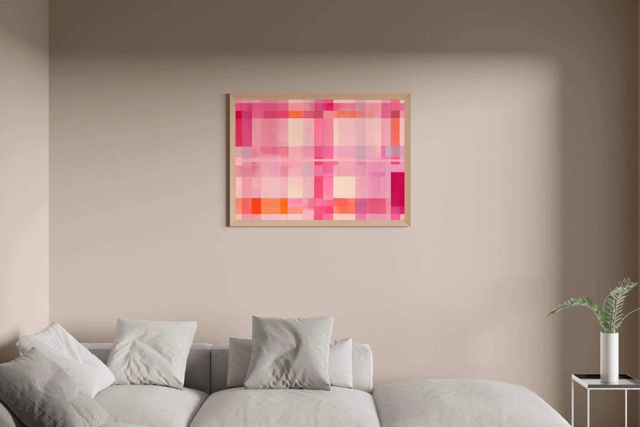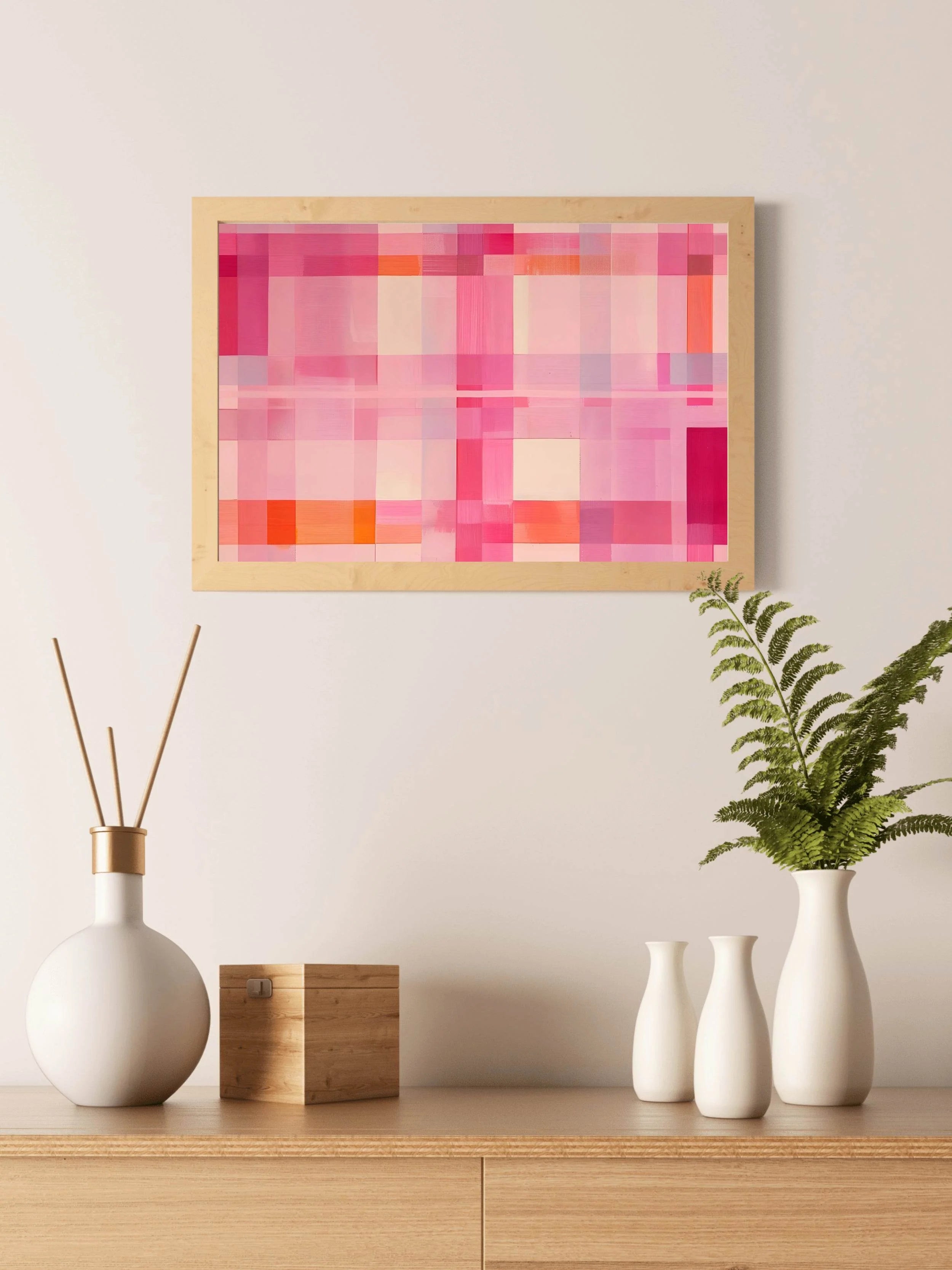 This artwork is amazing and brings a unique style to my space. If you're considering the Grid of Squares in Shades of Pink and Orange, this review should help.